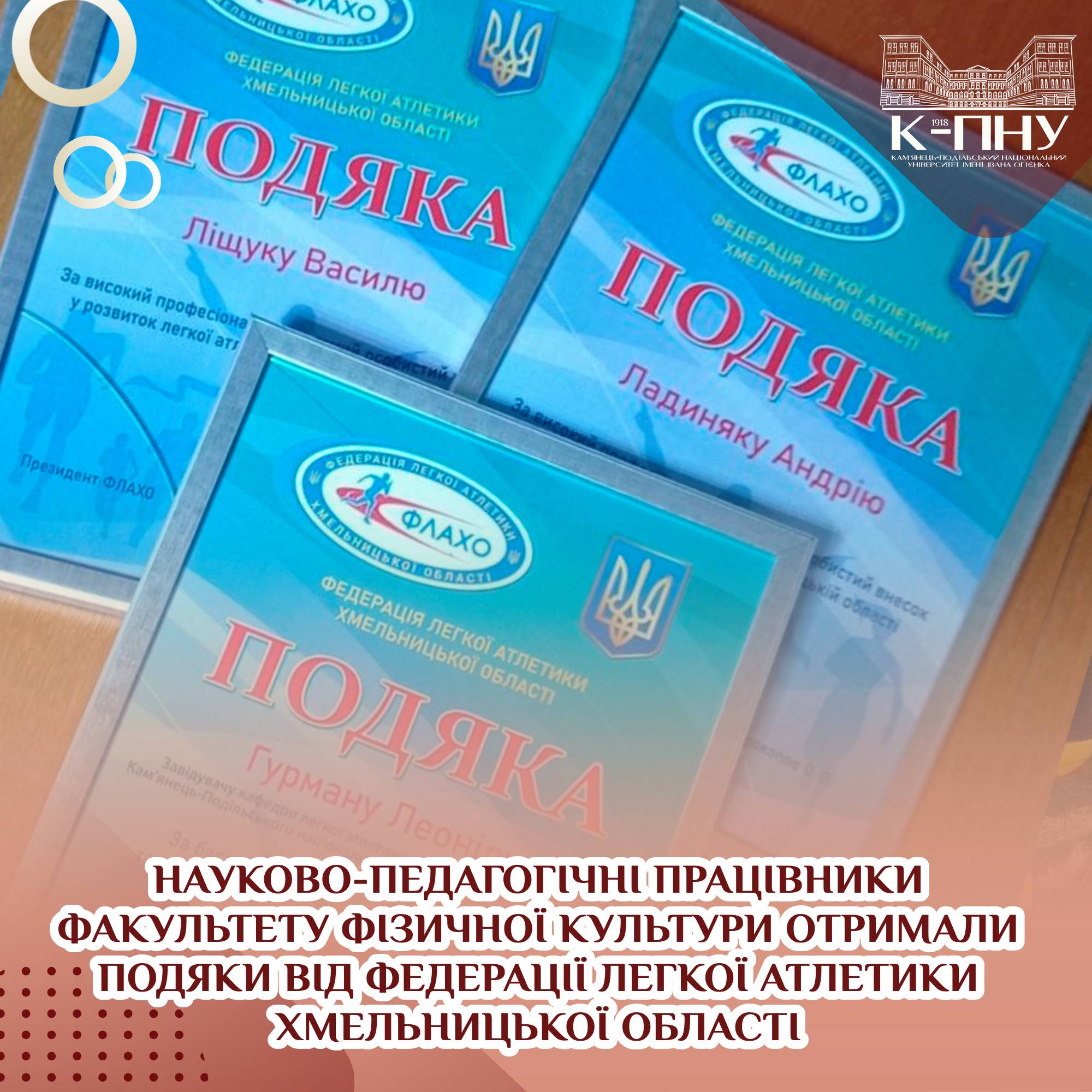 Науково-педагогічні працівники факультету фізичної культури отримали подяки від Федерації легкої атлетики Хмельницької області