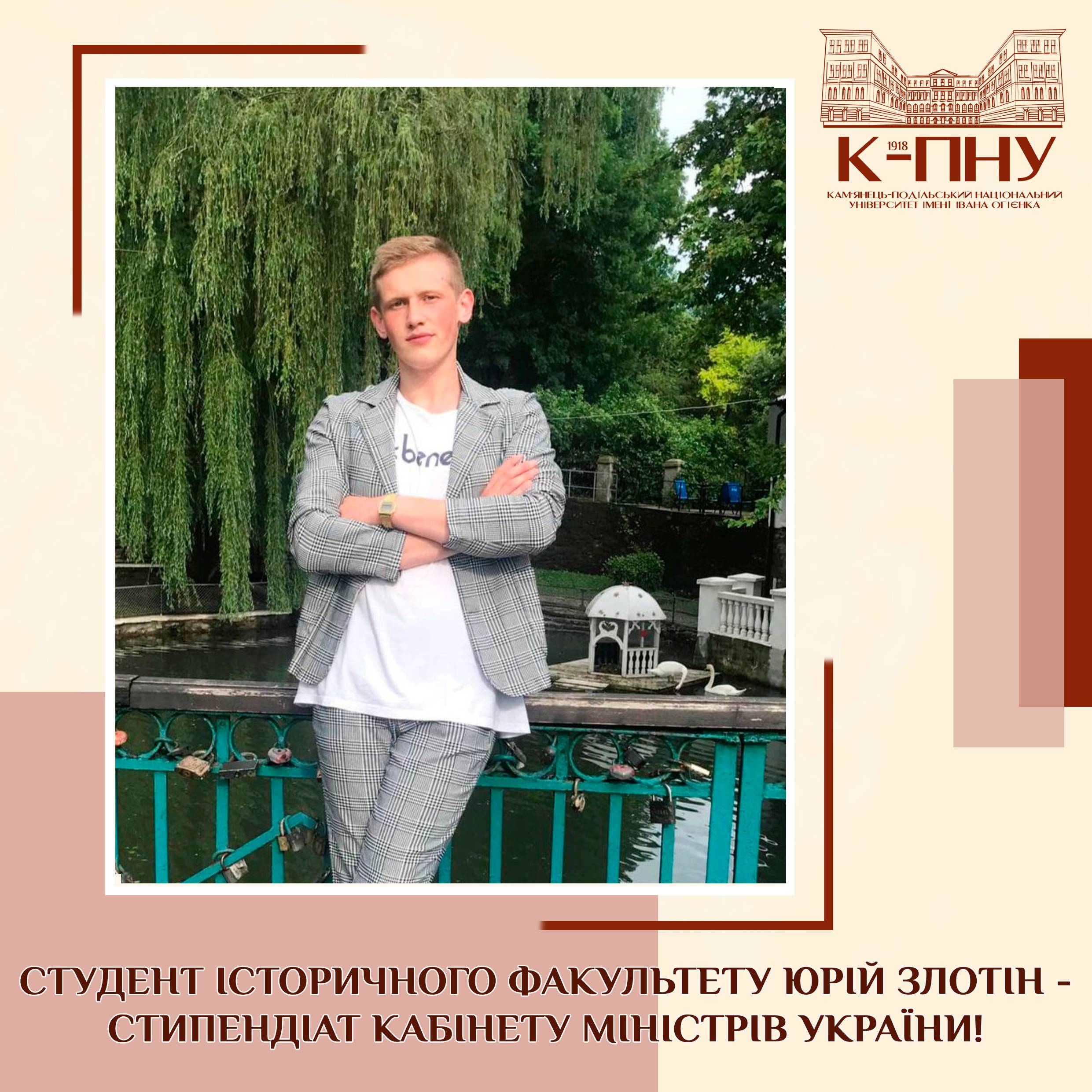 Студент історичного факультету Юрій Злотін – стипендіат Кабінету Міністрів України!