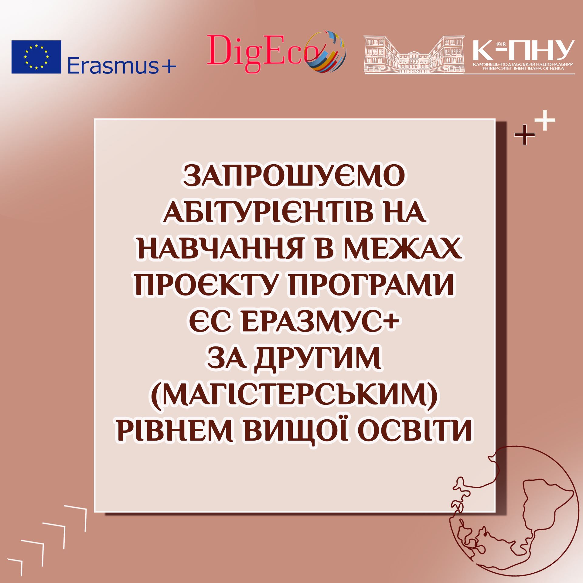 Запрошуємо абітурієнтів на навчання в межах проєкту Програми ЄС ЕРАЗМУС+ за другим (магістерським) рівнем вищої освіти