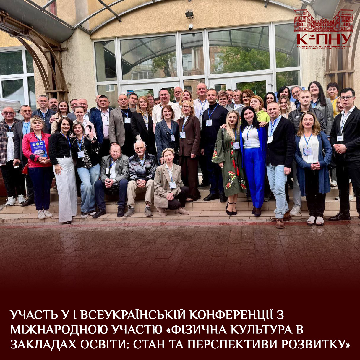 23-25 травня 2025 року науково-педагогічні працівники факультету фізичної культури: Іван Стасюк, декан, кандидат наук з фізичного виховання та спорту, доцент кафедри спорту і спортивних ігор, доцент; Микола Прозар, завідувач кафедри спорту і спортивних ігор, кандидат наук з фізичного виховання та спорту, доцент; Юлія Петрова, викладач кафедри спорту і спортивних ігор; Юрій Юрчишин, завідувач кафедри теорії і методики фізичного виховання, кандидат наук з фізичного виховання та спорту, доцент; Аліна Боднар, кандидат педагогічних наук, доцент кафедри теорії і методики фізичного виховання; Володимир Мисів, кандидат наук з фізичного виховання та спорту, доцент кафедри теорії і методики фізичного виховання, доцент – взяли участь у I Всеукраїнській конференції з міжнародною участю «Фізична культура в закладах освіти: стан та перспективи розвитку», яку провів факультет фізичного виховання і спорту Прикарпатського національного університету імені Василя Стефаника.