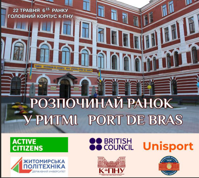 Запрошуємо долучитися до проєкту соціальної дії «Unisport» і стати учасником релаксаційного івент-тренінгу з PortDeBras, який відбудеться 22 травня о 06:15 біля головного корпусу К-ПНУ.