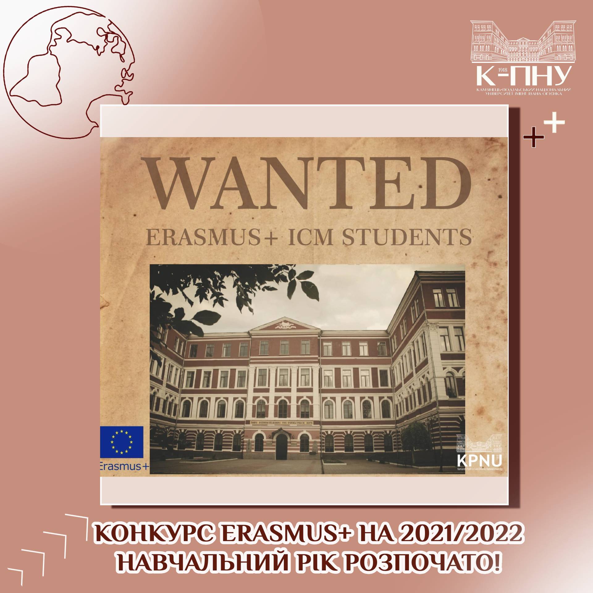 Конкурс ERASMUS+ на 2021/2022 навчальний рік розпочато!