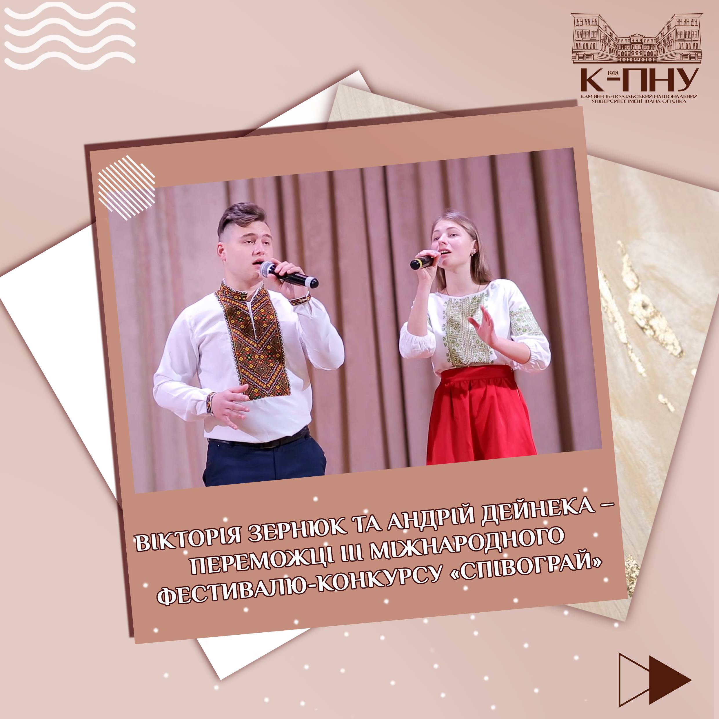 Вікторія Зернюк та Андрій Дейнека – переможці ІІІ Міжнародного фестивалю-конкурсу «СПІВОГРАЙ»