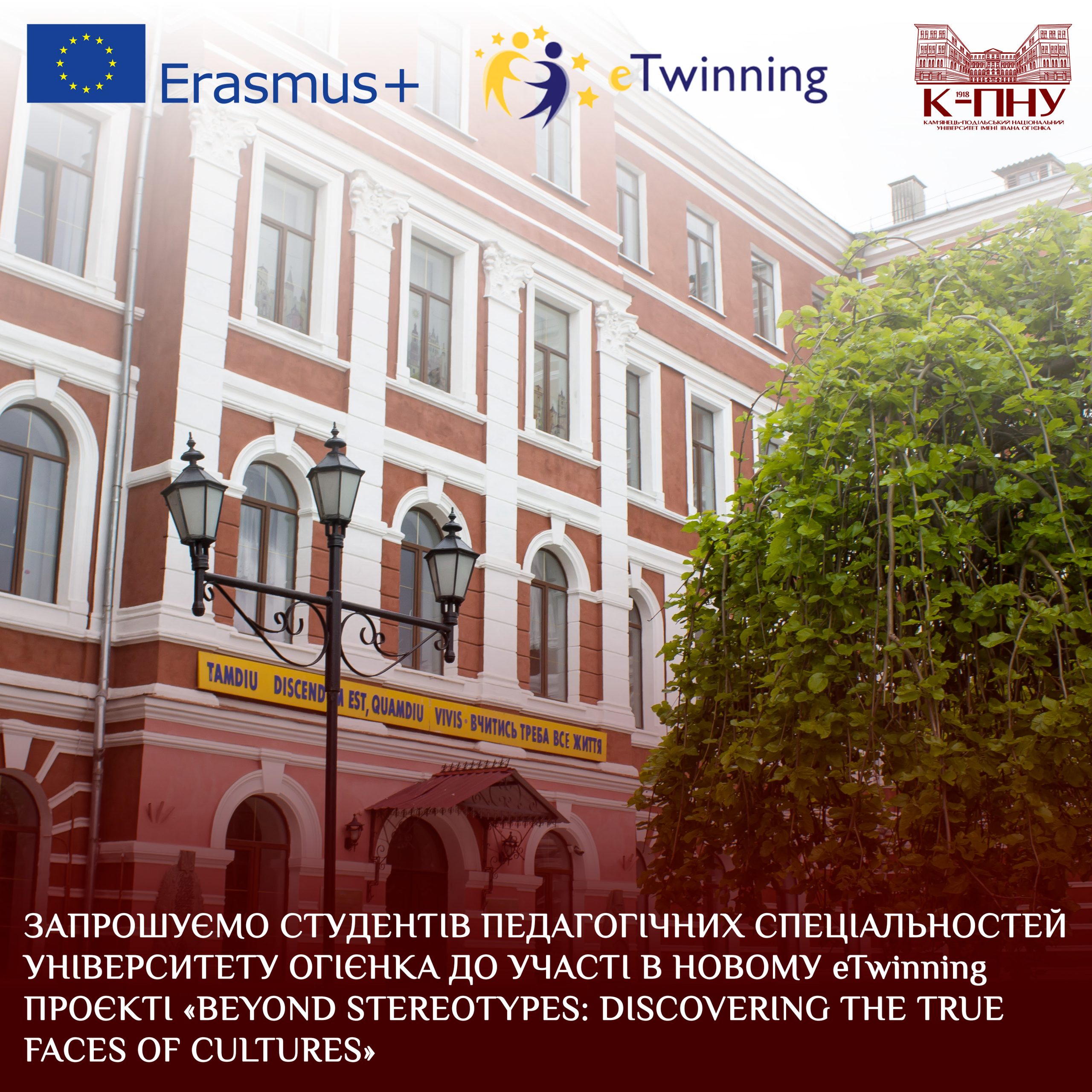 Із приємністю інформуємо студентську спільноту К-ПНУ про запрошення до участі в проєкті Програми ЄС eTwinning «Beyond Stereotypes: Discovering the True Faces of Cultures».