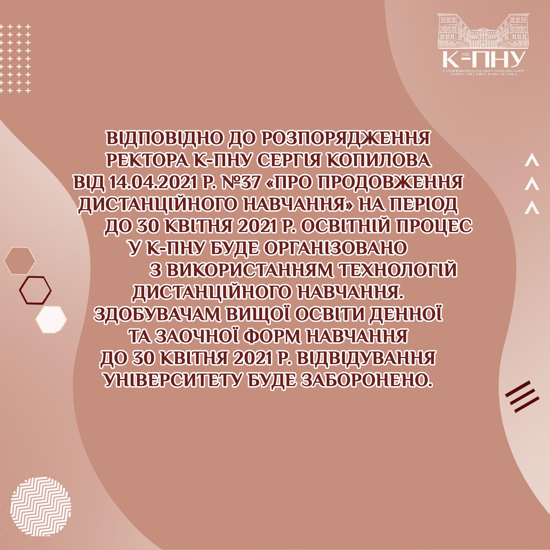Згідно з розпорядженням ректора К-ПНУ Сергія Копилова від 13.04.2021 р. №36 «Щодо проведення Всеукраїнського опитування «Ціннісні орієнтири українського студентства», відповідно до листа Державної наукової установи «Інституту модернізації змісту освіти» від 08.04.2021 р. № 22.1/10-839, згідно з яким Українська Асоціація Викладачів та Дослідників Європейської інтеграції в межах проєкту Еразмус+ напряму ім. Жана Моне: 620395-ЕРР-1-2020-1-UA-EPPJMO-SUPPA «ЄС-Східне партнерство: майбутні шляхи активізації суспільних ініціатив академічних та громадських спільнот в Україні» започатковує дослідження щодо ціннісних трансформацій у середовищі українського студентства, і на виконання Плану заходів з оцінювання якості освітньої діяльності та якості освіти в Кам’янець-Подільському національному університеті імені Івана Огієнка на ІІ семестр 2020-2021 н. р. в університеті проводять анонімне опитування здобувачів вищої освіти ступенів вищої освіти «бакалавр» та «магістр» денної форми здобуття вищої освіти. Читати далі