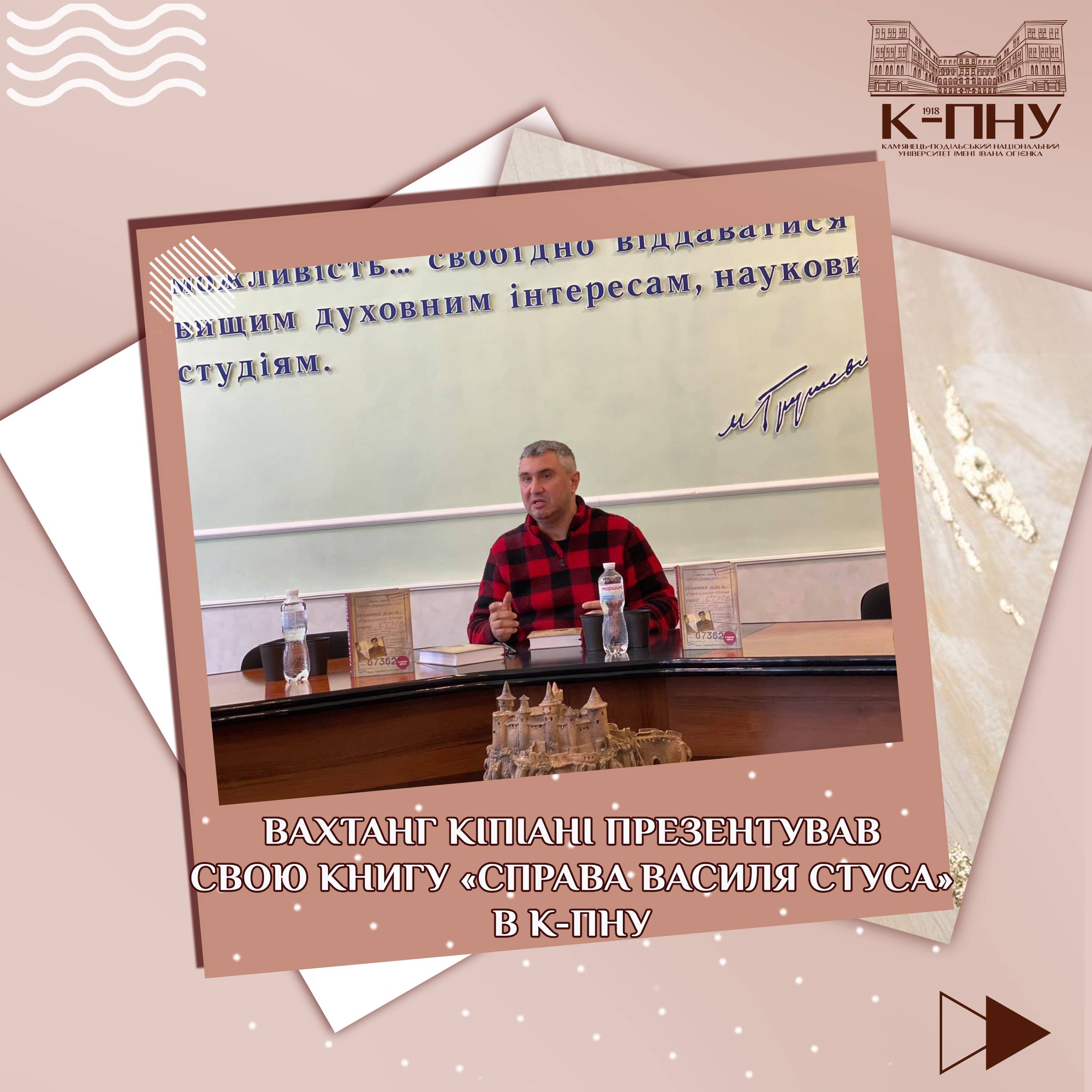 12 березня в межах циклу зустрічей із громадськістю Хмельниччини Кам’янець-Подільський національний університет імені Івана Огієнка відвідав заслужений журналіст України, історик, публіцист, головний редактор інтернет-видання «Історична правда»,  перший лауреат премії імені Георгія Гонгадзе, лауреат премії імені Олександра Кривенка «За поступ у журналістиці», засновник Музею-архіву преси у Києві, викладач Українського католицького університету у Львові та Національного університету «Києво-Могилянська академія», активний громадський діяч Вахтанг Кіпіані із презентацією книги «Справа Василя Стуса».