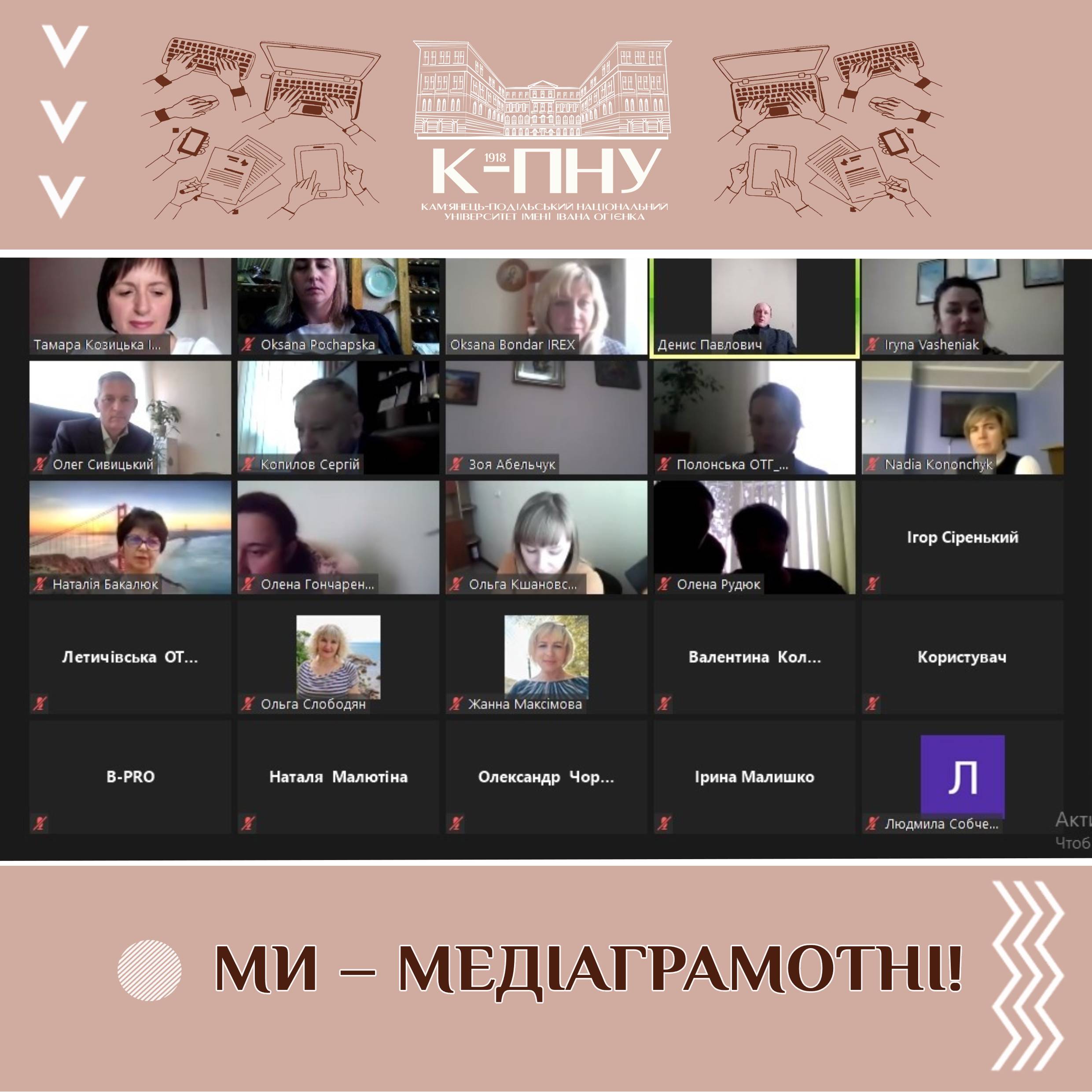 24 лютого ректор університету Сергій Копилов спільно з координаторкою проєкту «Вивчай та розрізняй: інфо-медійна грамотність» у К-ПНУ доцентом кафедри журналістики Оксаною Почапською долучилися до інформаційної зустрічі щодо впровадження проєкту «Вивчай та розрізняй: інфо-медійна грамотність» у Хмельницькій області.