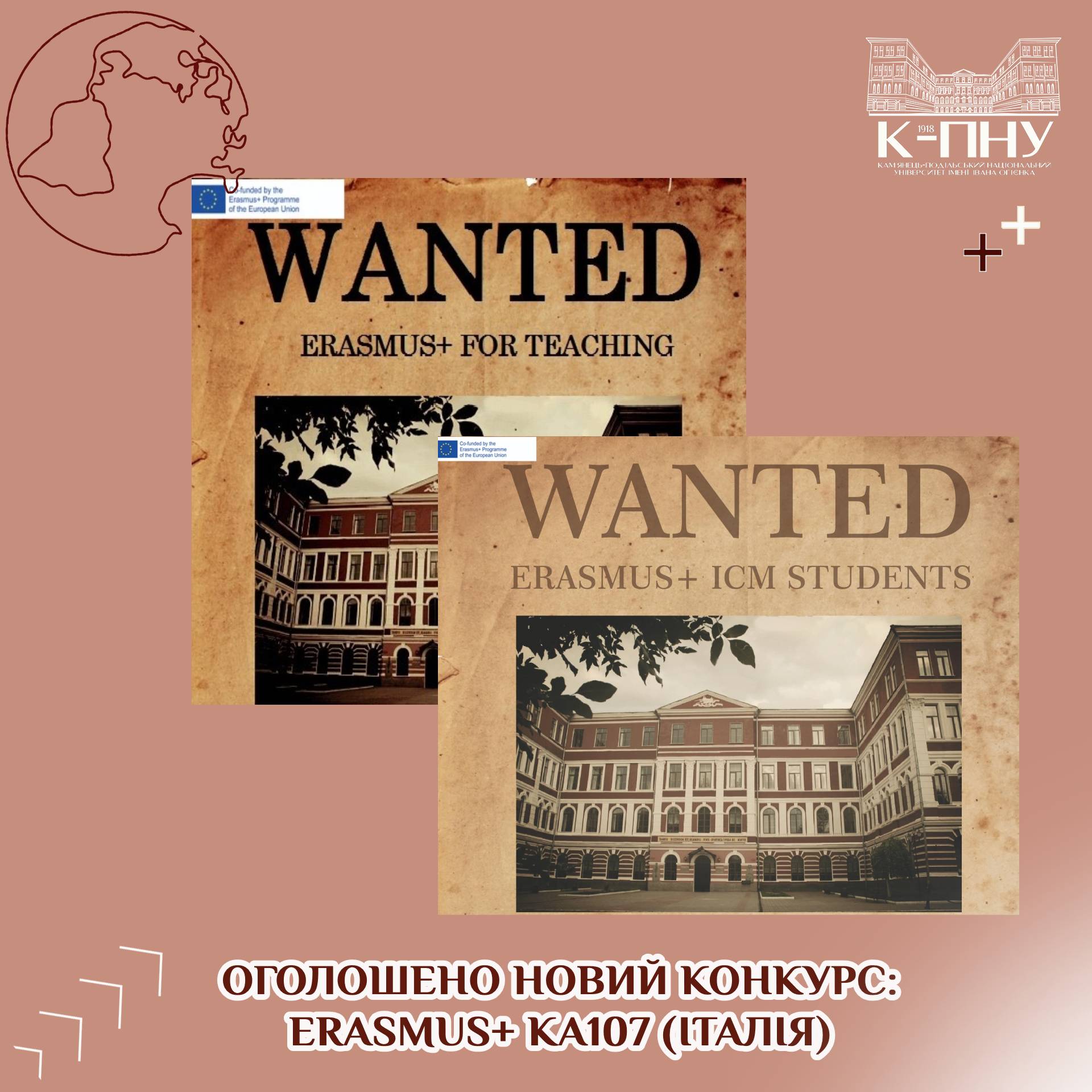 Оголошено конкурс для здобувачів вищої освіти та науково-педагогічних працівників К-ПНУ на участь у програмі міжнародної академічної мобільності Erasmus+KA 107 в Римському Університеті Сап’єнца (Італія).