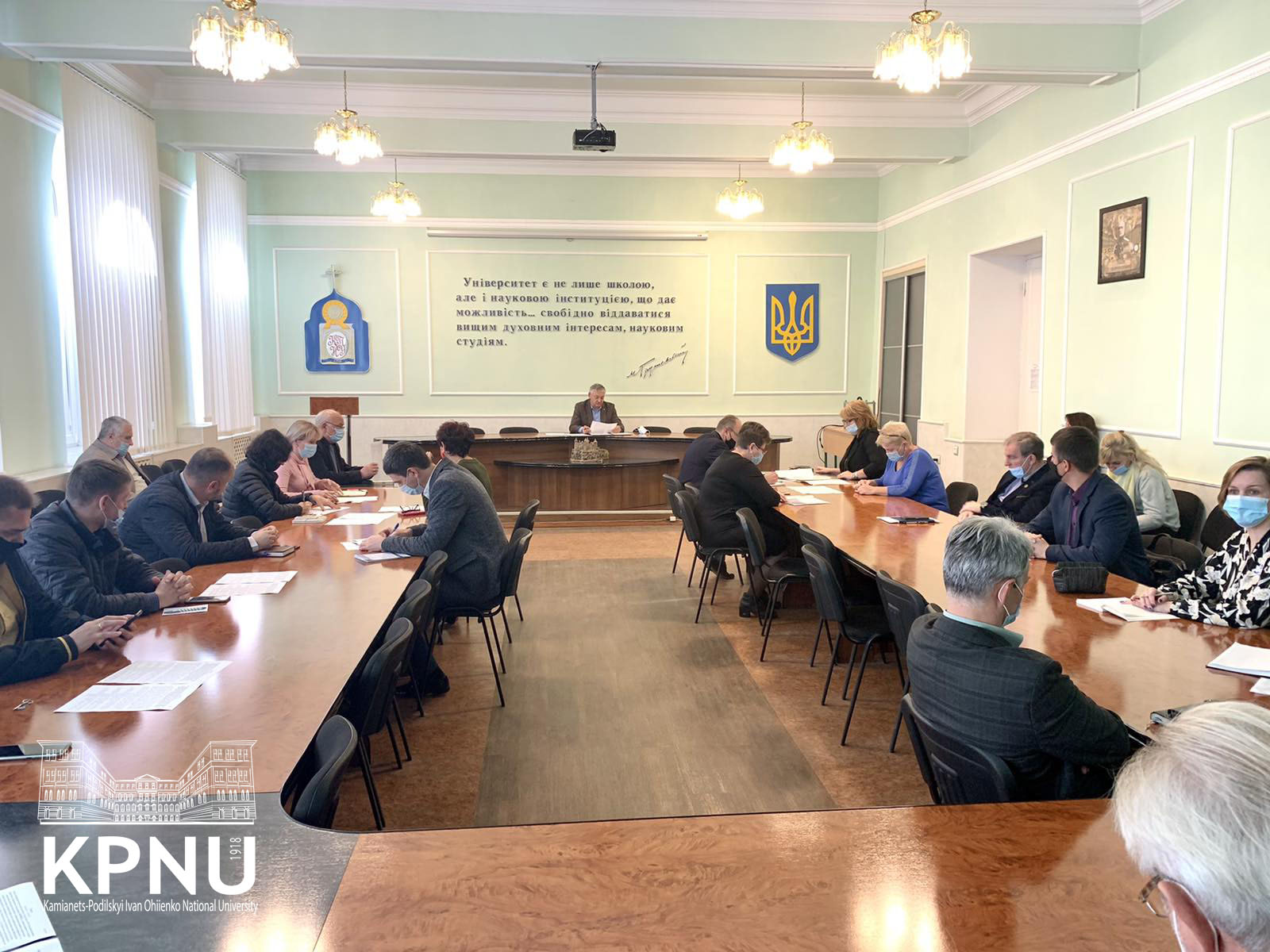 15 жовтня 2020 року відбулося чергове засідання ректорату, під час якого ректор університету Сергій Копилов поінформував присутніх про нормативно-правові та розпорядчі документи в галузі освіти. Начальник центру інформаційних технологій Віта Романюк проаналізувала наповнення навчального контенту модульного об’єктно-орієнтованого динамічного навчального середовища (MOODLE). Також члени ректорату обговорили організацію підвищення кваліфікації педагогічних і науково-педагогічних працівників в університеті у 2020-2021 н.р. та її відповідність Порядку підвищення кваліфікації педагогічних і науково-педагогічних працівників.