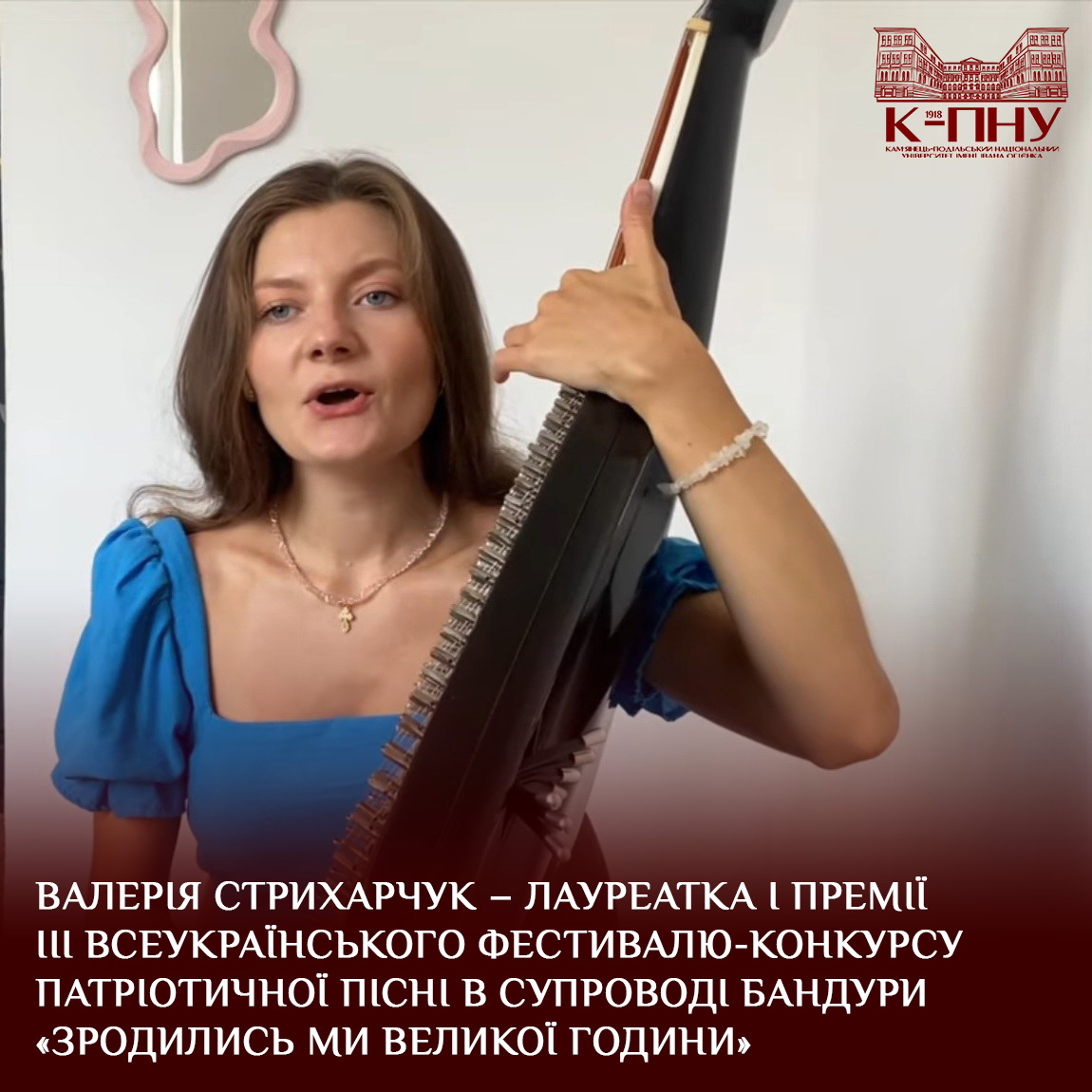 Валерія Стрихарчук – лауреатка І премії ІІІ Всеукраїнського фестивалю-конкурсу патріотичної пісні в супроводі бандури «Зродились ми великої години»