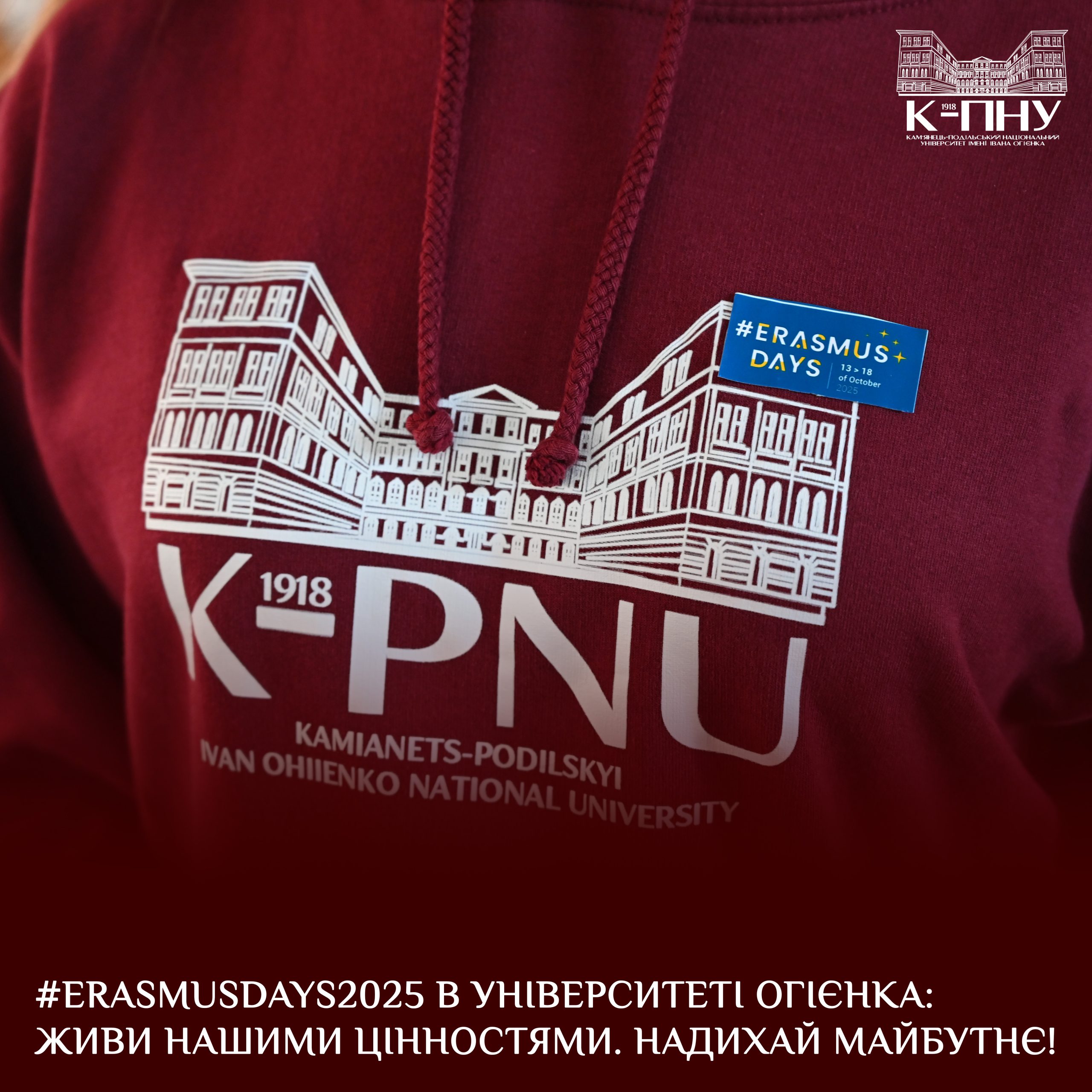 З 13 до 18 жовтня Кам’янець-Подільський національний університет імені Івана Огієнка долучився до глобального святкування #ErasmusDays2025 – ініціативи, що об’єднує учасників програми Erasmus+ з усієї Європи. Упродовж тижня в університеті відбувалися заходи, які допомогли студентам відчути, що Erasmus+ – це не лише про мобільність, а про цінності, розвиток і майбутнє.