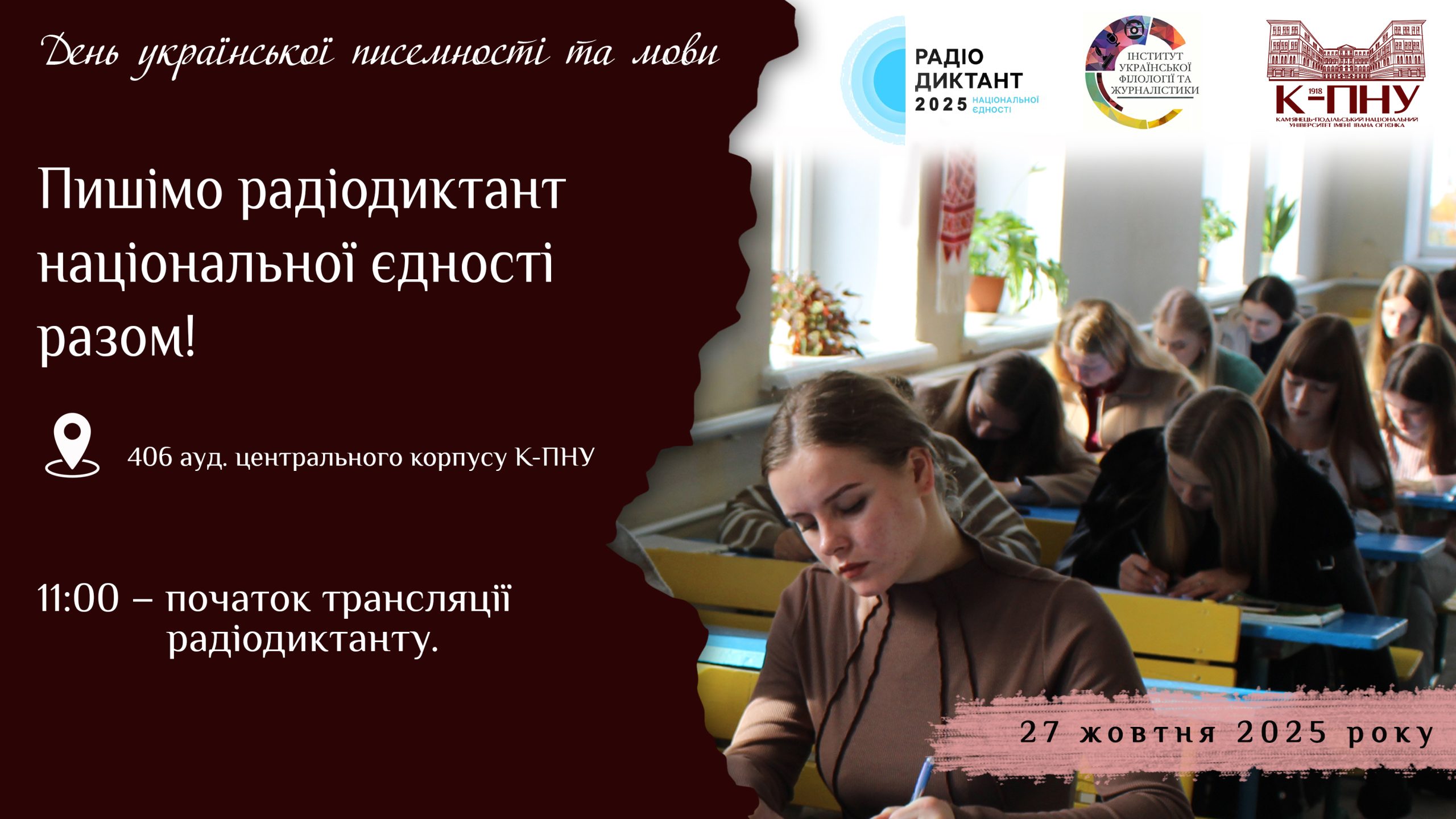 Традиційно до Дня української писемності та мови (27 жовтня 2025 року) українців запрошують долучитися до найбільшого україномовного флешмобу – Всеукраїнського радіодиктанту національної єдності.