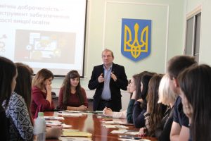 У вступному слові перший проректор Володимир Дубінський наголосив на тому, що діяльність академічного співтовариства буде ефективною за умови створення сприятливого середовища між усіма учасниками освітнього процесу з огляду на певний комплекс цінностей, норм і правил поведінки. У цьому контексті впровадження принципів академічної доброчесності в закладах вищої освіти слугуватиме передумовою позитивної зміни суспільної свідомості, громадянської культури загалом. Читати далі