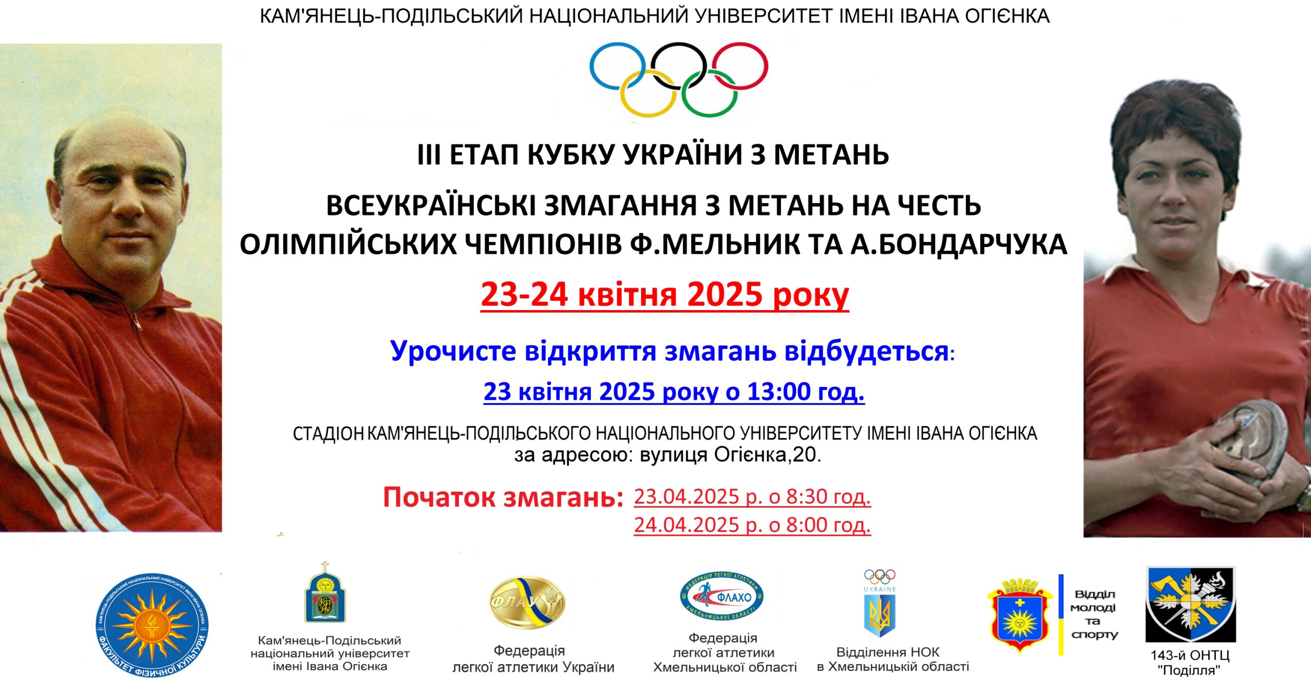 ІІІ етап Кубку України з метань. Всеукраїнські змагання з метань на честь олімпійських чемпіонів Ф. Мельник та А. Боднарчука