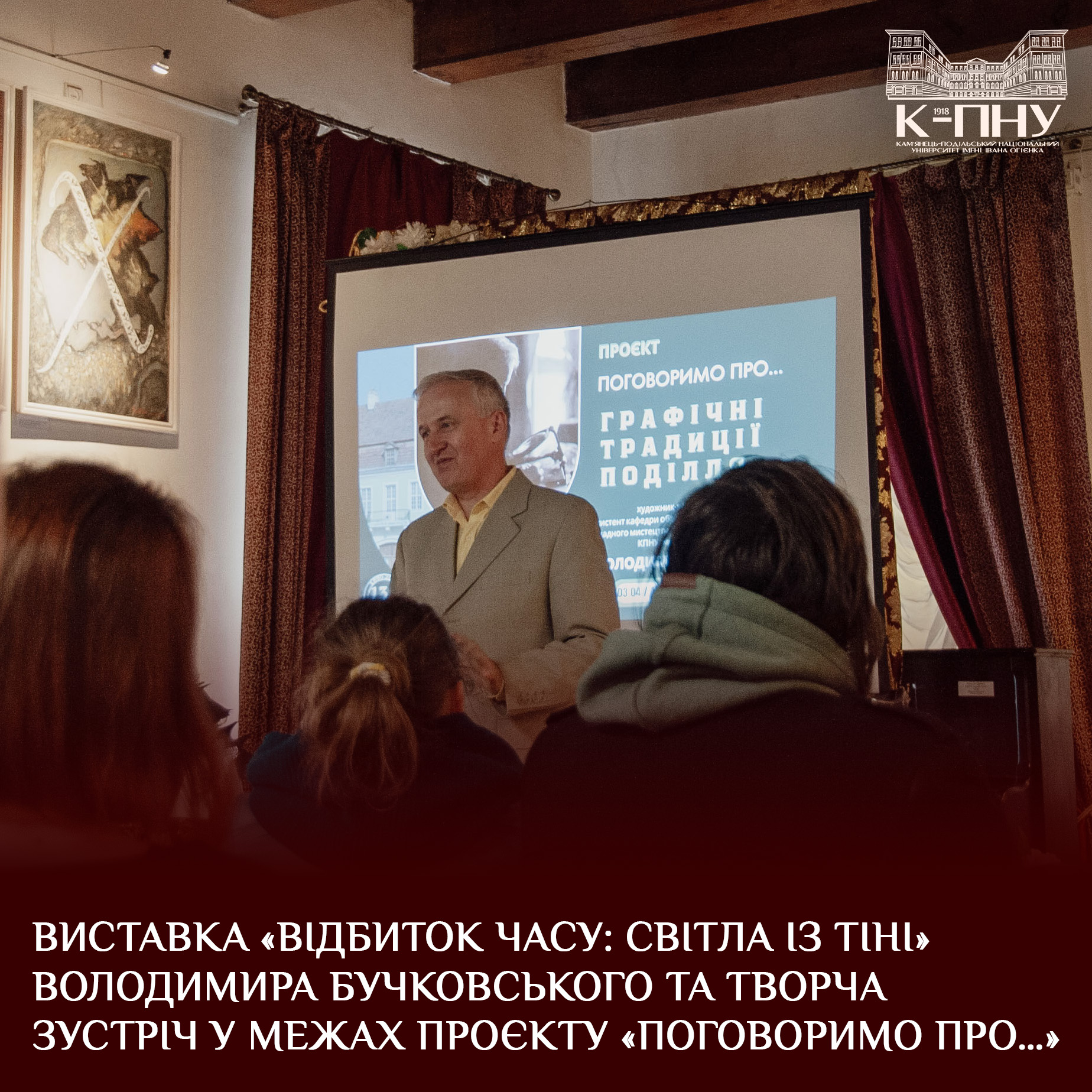 03 квітня в Галереї мистецтв відбулася зустріч у межах проєкту «Поговоримо про…», яка цього разу була присвячена загадковому і глибокому світу графіки. Лектором був художник-графік, педагог, асистент кафедри образотворчого і декоративно-прикладного мистецтва та реставрації творів мистецтва К-ПНУ Володимир Бучковський.