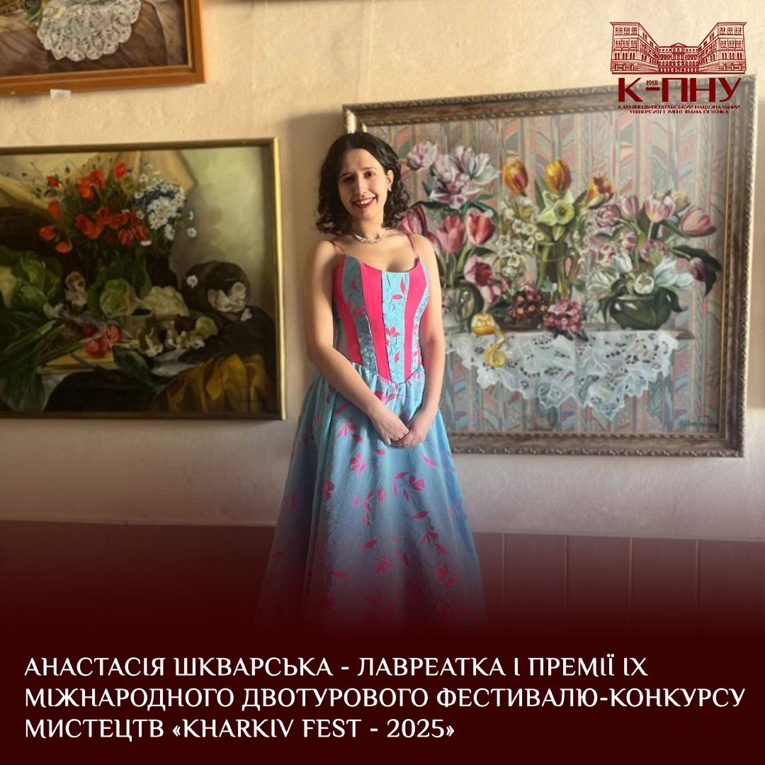 Вітаємо студентку магістратури Анастасію Шкварську, яка стала лавреаткою І премії ІX Міжнародного двотурового фестивалю-конкурсу мистецтв «Kharkiv Fest – 2025».