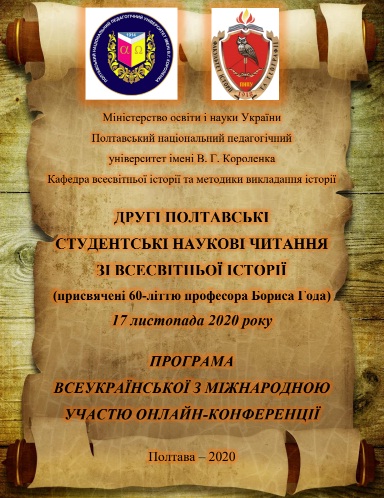 Організатор Всеукраїнської онлайн-конференції з міжнародною участю – кафедра всесвітньої історії та методики викладання історії ПНПУ ім. В.Г.Короленка.