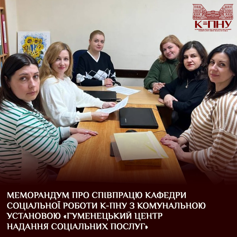 03 січня 2024 року кафедра соціальної роботи Кам’янець-Подільського національного університету імені Івана Огієнка уклала Меморандум про співпрацю з комунальною установою «Гуменецький центр надання соціальних послуг».