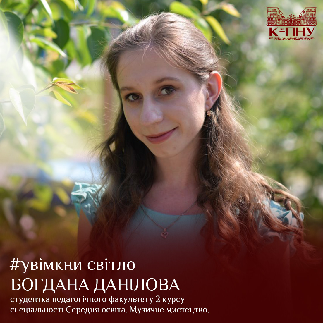 Богдана Данілова – студентка педагогічного факультету 2 курсу спеціальності Середня освіта. Музичне мистецтво.