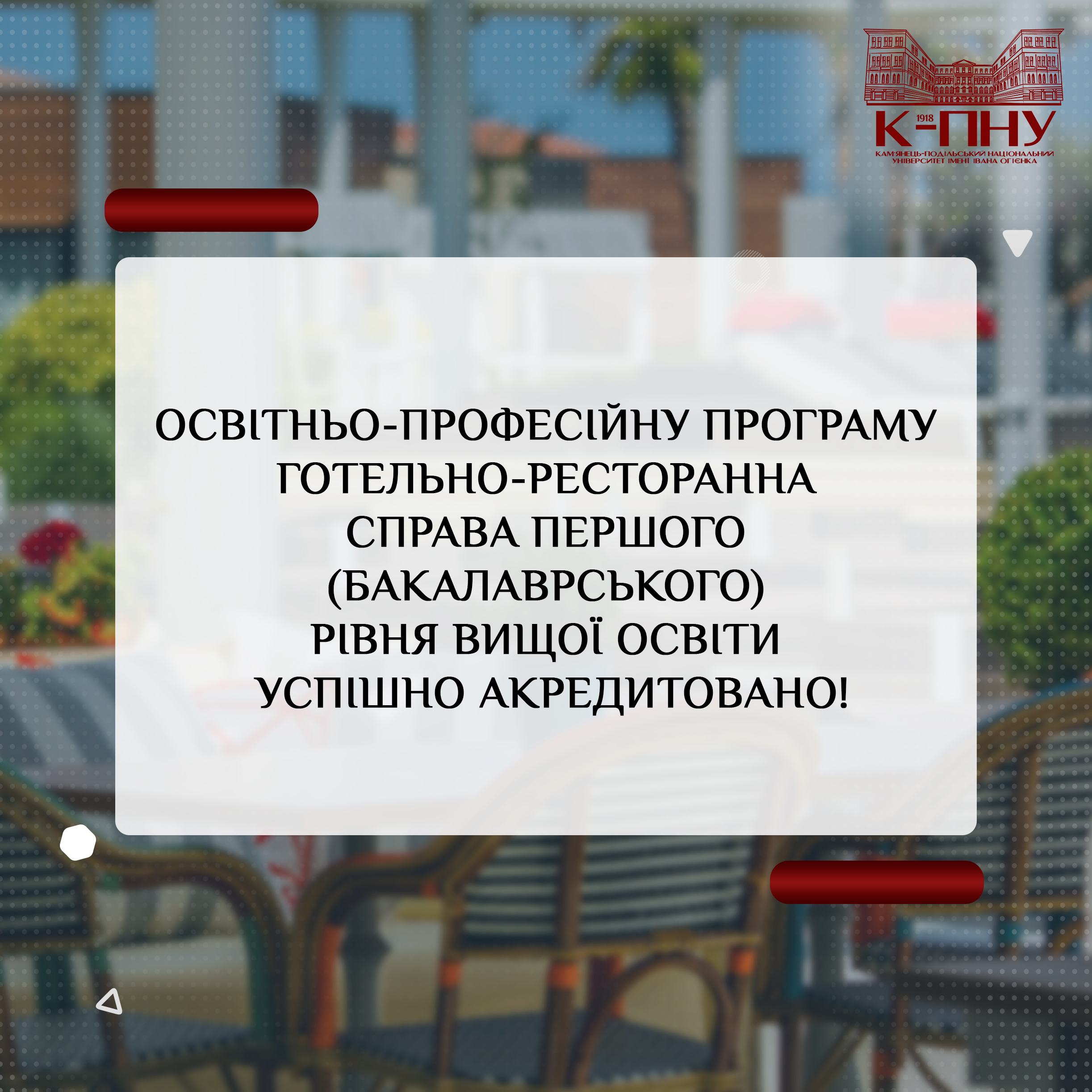 Освітньо-професійну програму Готельно-ресторанна справа першого (бакалаврського) рівня вищої освіти успішно акредитовано!