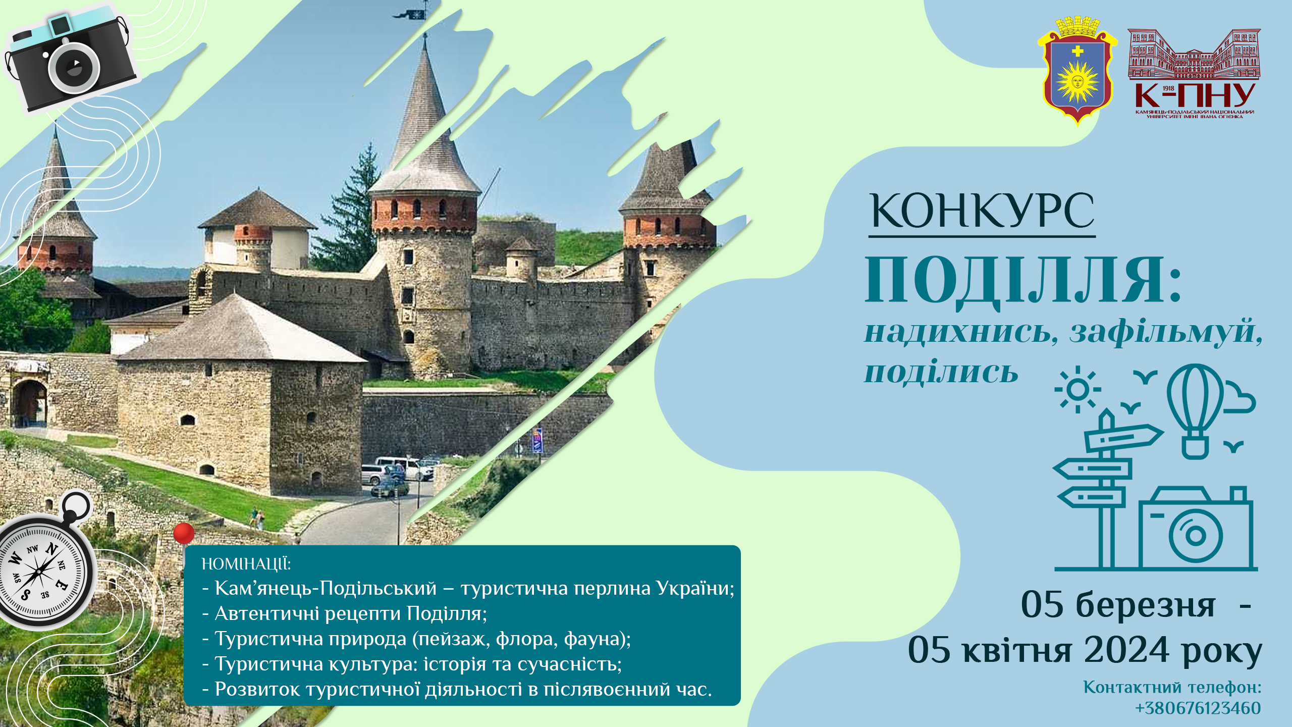 Кафедра туризму та готельно-ресторанної справи К-ПНУ запрошує студентів та учнів узяти участь у конкурсі «Поділля: надихнись, зафільмуй, поділись».