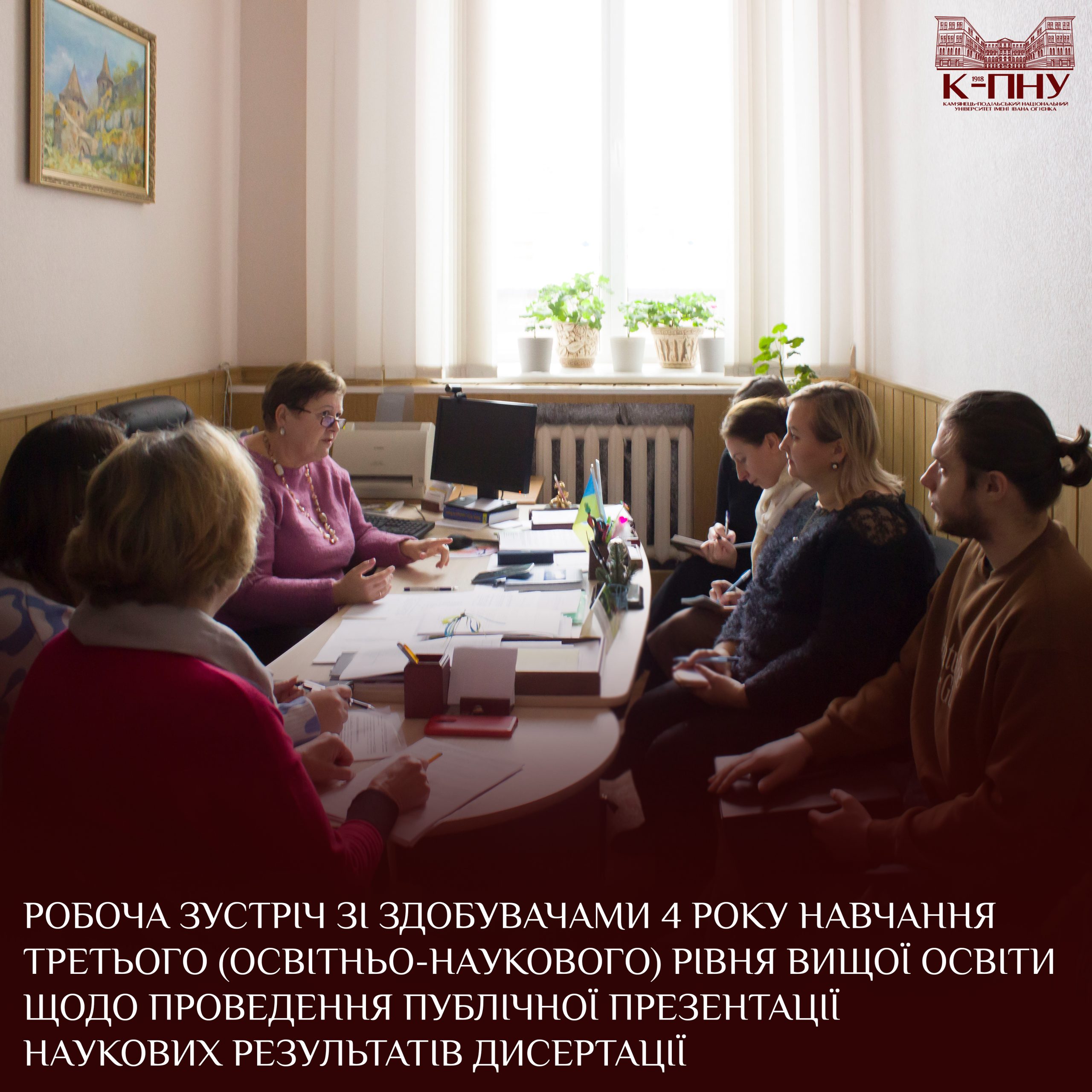 Робоча зустріч зі здобувачами 4 року навчання третього (освітньо-наукового) рівня вищої освіти щодо проведення публічної презентації наукових результатів дисертації