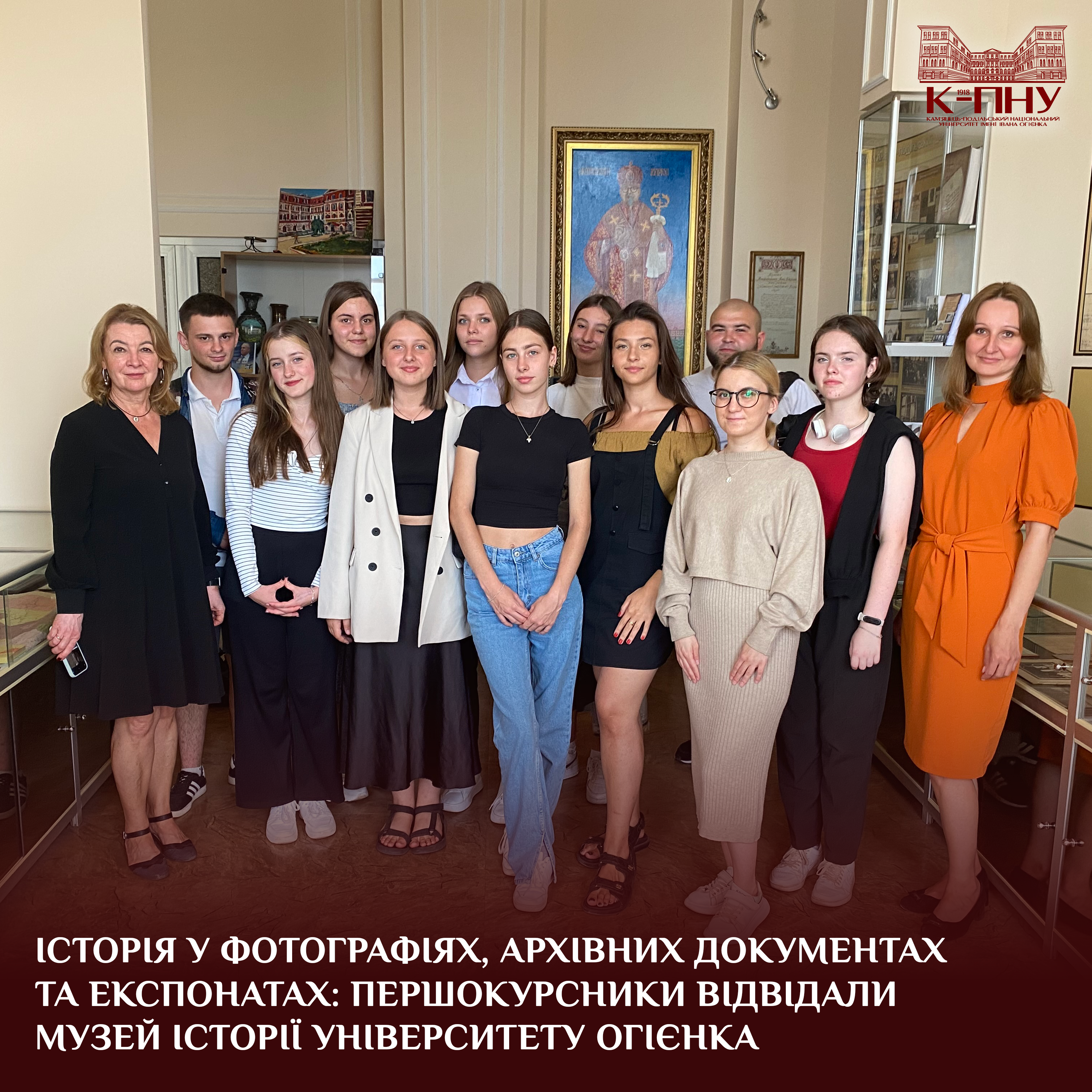 Для здобувачів освіти першого курсу було організовано та проведено екскурсію до музею історії К-ПНУ. Кандидат історичних наук, доцент кафедри образотворчого і декоративно-прикладного мистецтва та реставрації творів мистецтва, директор музею Ірина Паур розповіла про історію створення, розвитку та реорганізації навчального закладу.