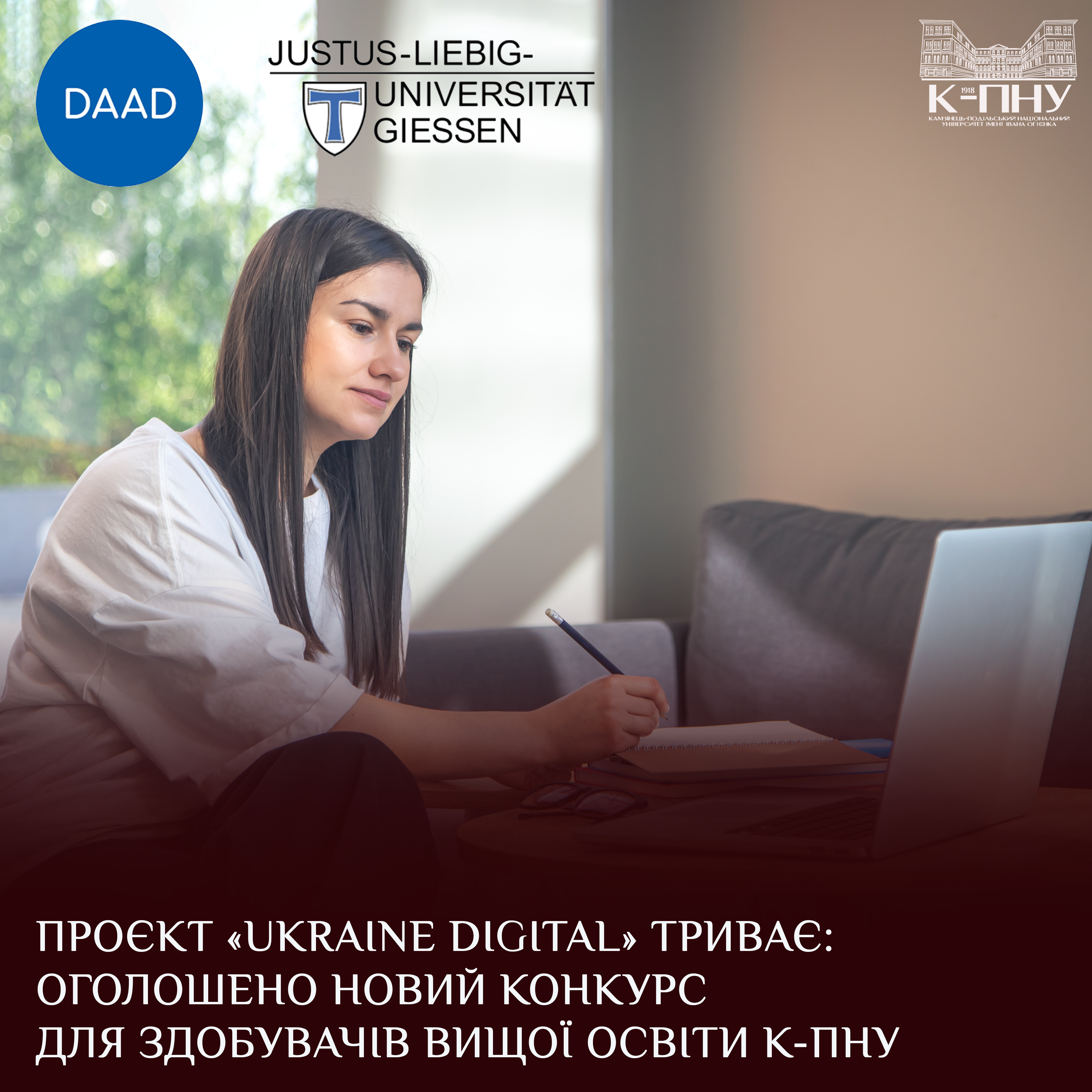 Проєкт «Ukraine Digital» триває: оголошено новий конкурс для здобувачів вищої освіти К-ПНУ