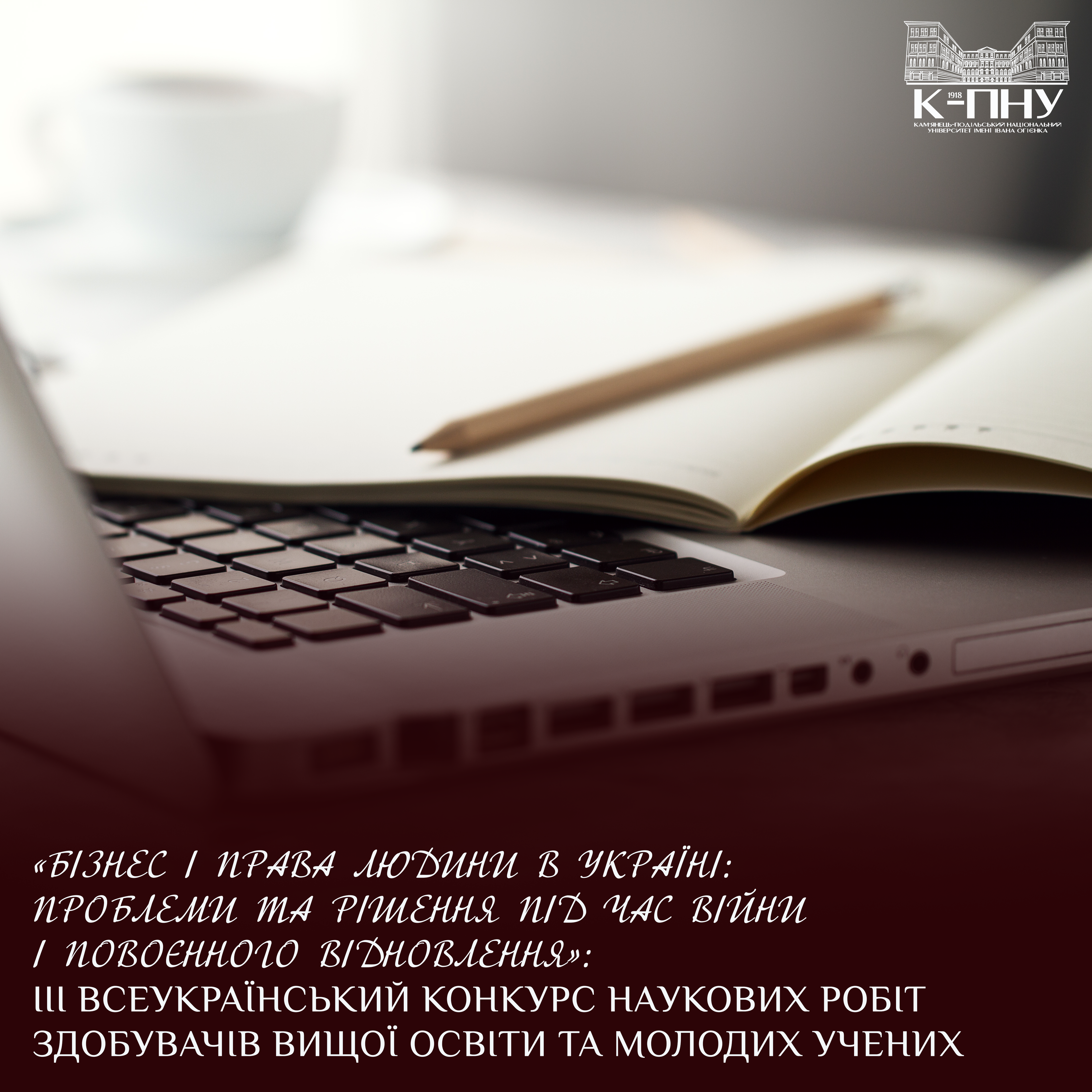 Державна установа «Інститут економіко-правових досліджень імені В.К. Мамутова Національної академії наук України» з її Центром перспективних досліджень і співробітництва з прав людини в сфері економіки (Інститут), Уповноважений Верховної Ради України з прав людини (Уповноважений), Донецький науковий центр НАН України та МОН України, Офіс аналітики та консультацій з питань сталого розвитку у співпраці та за підтримки Програми розвитку ООН в Україні оголошують про проведення ІІІ Всеукраїнського конкурсу наукових робіт здобувачів вищої освіти та молодих учених «БІЗНЕС І ПРАВА ЛЮДИНИ В УКРАЇНІ: ПРОБЛЕМИ ТА РІШЕННЯ ПІД ЧАС ВІЙНИ ТА ПОВОЄННОГО ВІДНОВЛЕННЯ» з нагоди 75-річчя Загальної декларації прав людини.