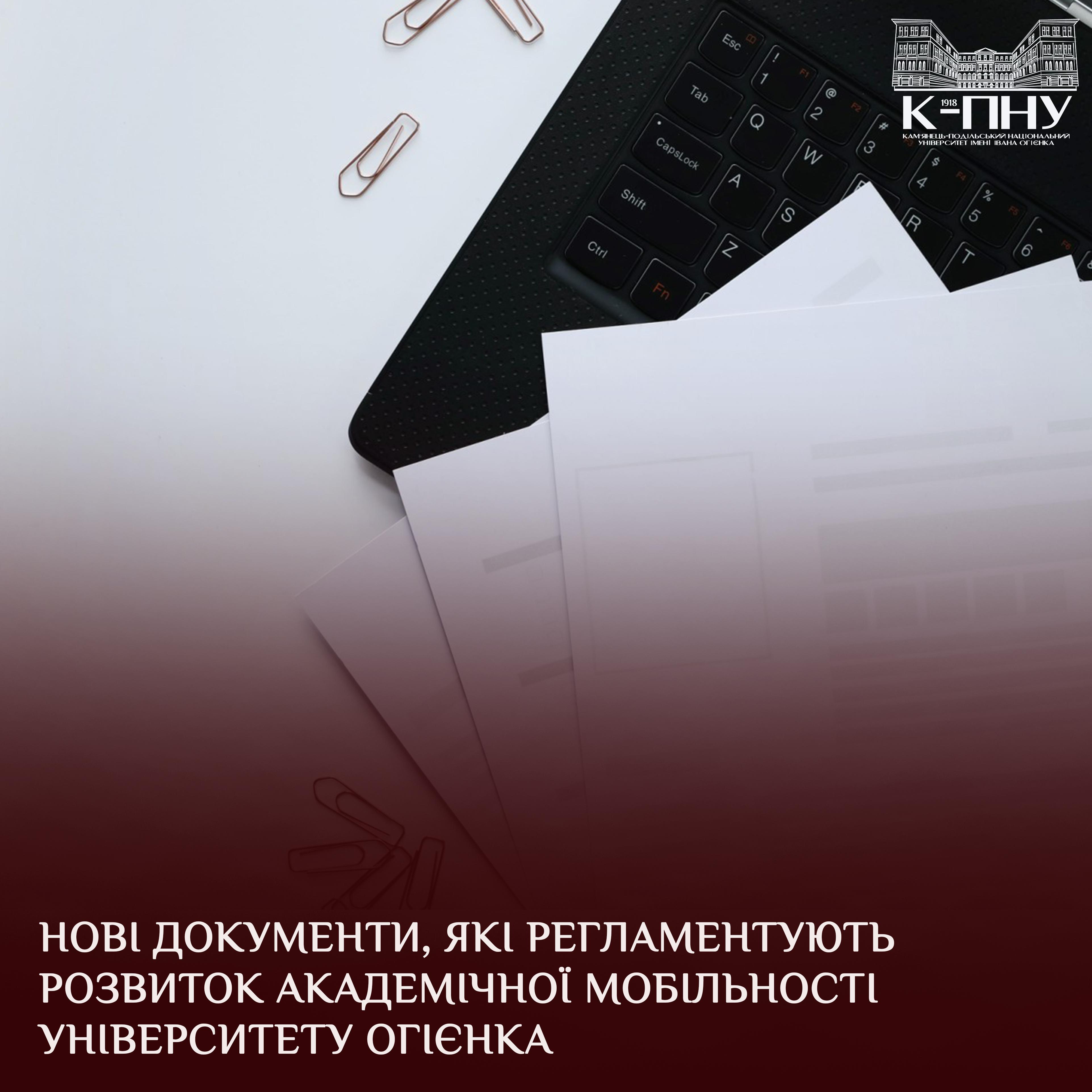 Просимо ознайомитися з «ПОЛОЖЕННЯМ ПРО ПОРЯДОК РЕАЛІЗАЦІЇ ПРАВА НА АКАДЕМІЧНУ МОБІЛЬНІСТЬ УЧАСНИКІВ ОСВІТНЬОГО ПРОЦЕСУ КАМ’ЯНЕЦЬ-ПОДІЛЬСЬКОГО НАЦІОНАЛЬНОГО УНІВЕРСИТЕТУ ІМЕНІ ІВАНА ОГІЄНКА (нова редакція)» від 23 грудня 2022 року, яке регламентує діяльність Кам̓янець-Подільського національного університету імені Івана Огієнка в галузі організації академічної мобільності К-ПНУ за кордоном та в Україні. У документі деталізовано процедуру організаційного забезпечення права на академічну мобільність, зокрема визначено порядок укладання індивідуального навчального плану  академічної мобільності (для здобувачів вищої освіти), описано послідовність визнання результатів освітньої академічної мобільності учасників академічної мобільності.