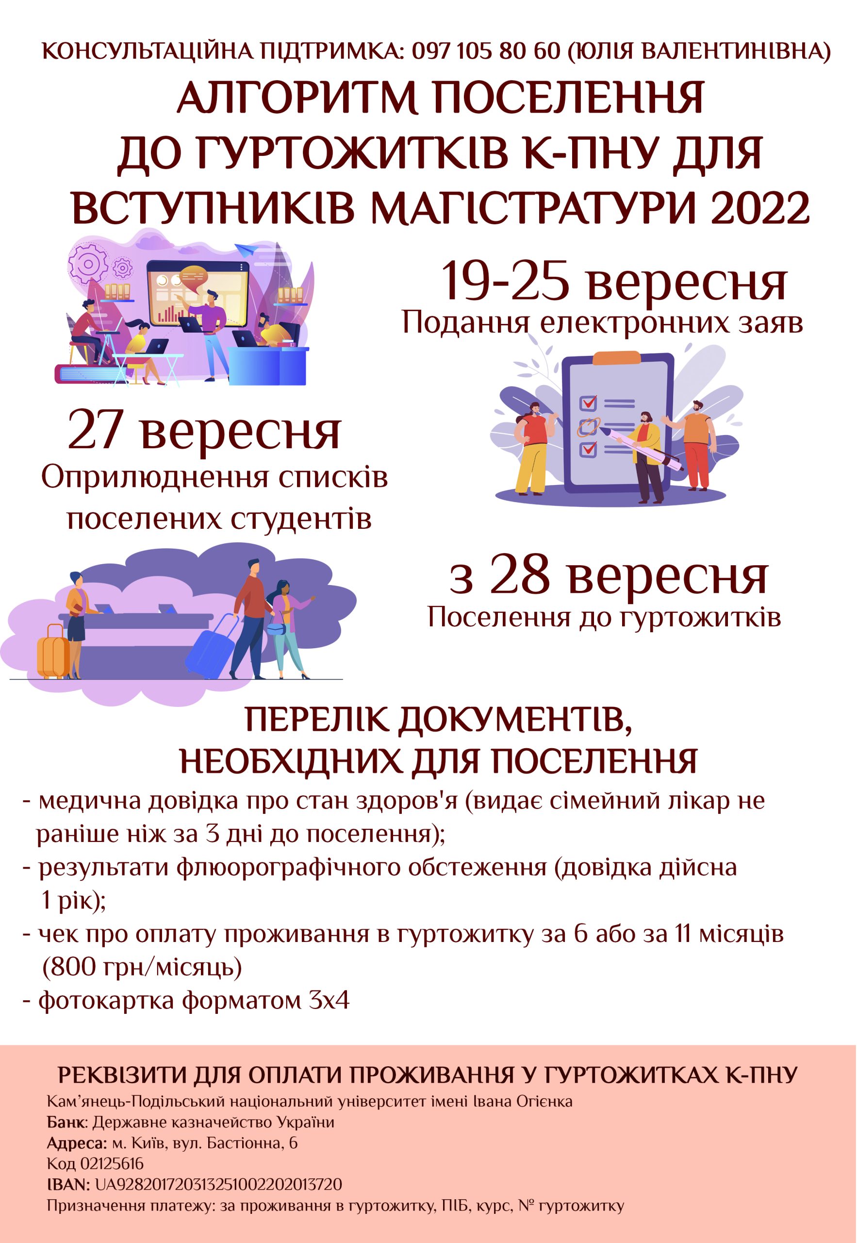 19-25 вересня– подання заяв для поселення за допомогою Google-форми.