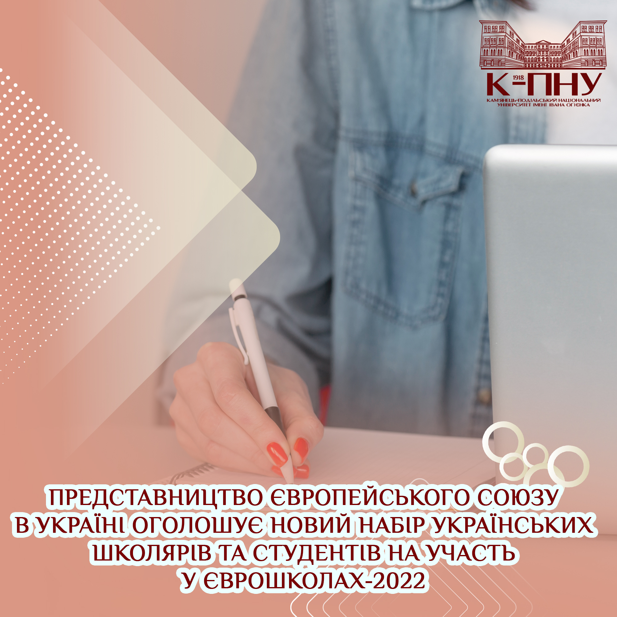 Представництво Європейського Союзу в Україні оголошує новий набір українських школярів та студентів на участь у Єврошколах-2022