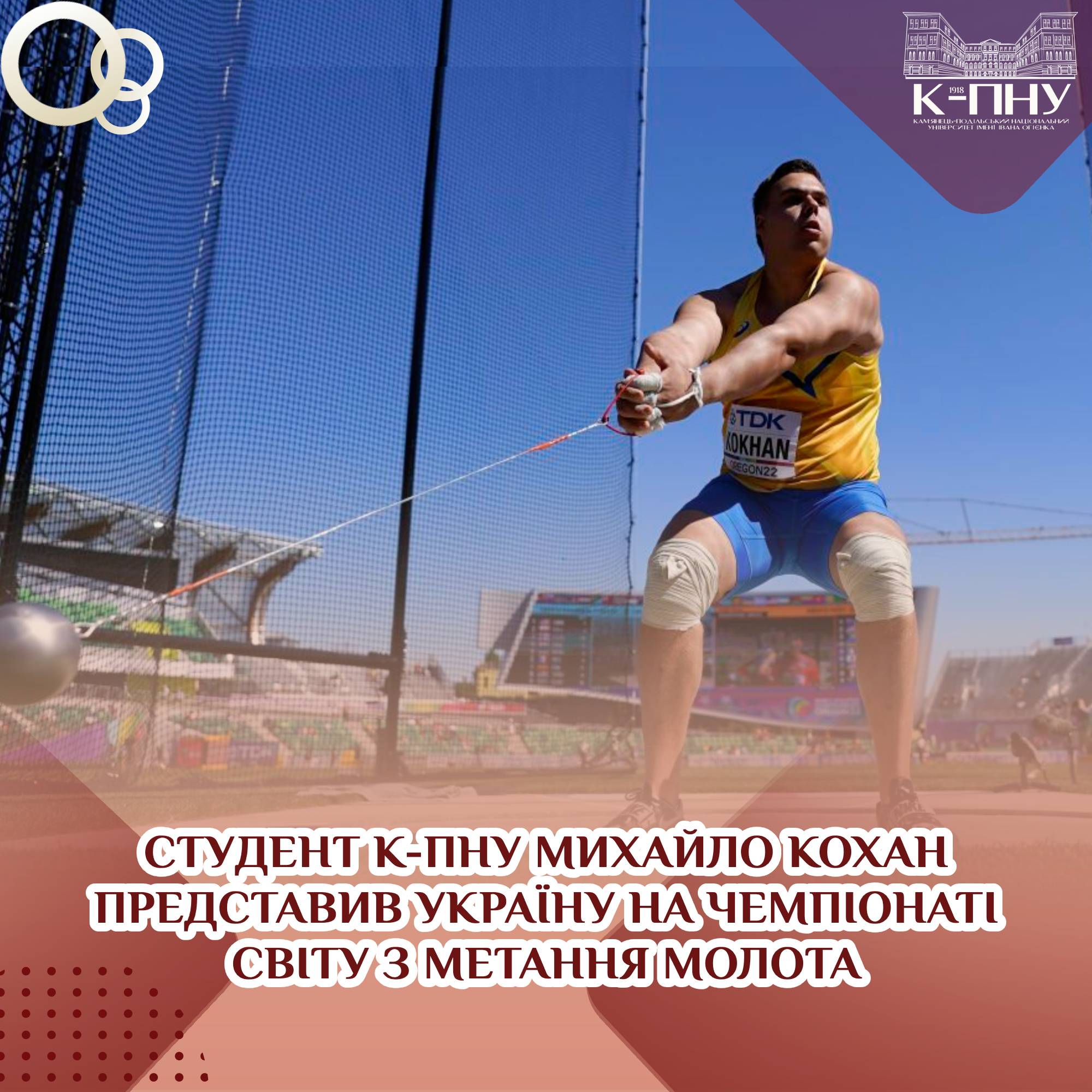 16 липня на чемпіонаті світу з легкої атлетики в американському Юджині відбувся фінал у секторі метання молота, у якому Україну представляв студент 2 курсу факультету фізичної культури Михайло Кохан. У фіналі Михайло став сьомим із результатом 78,83 м. Це найкращий результат спортсмена в цьому сезоні. Зазначимо, що для Михайла це другий дорослий чемпіонат світу в кар’єрі. Вітаємо спортсмена та бажаємо нових успішних спортивних перемог!