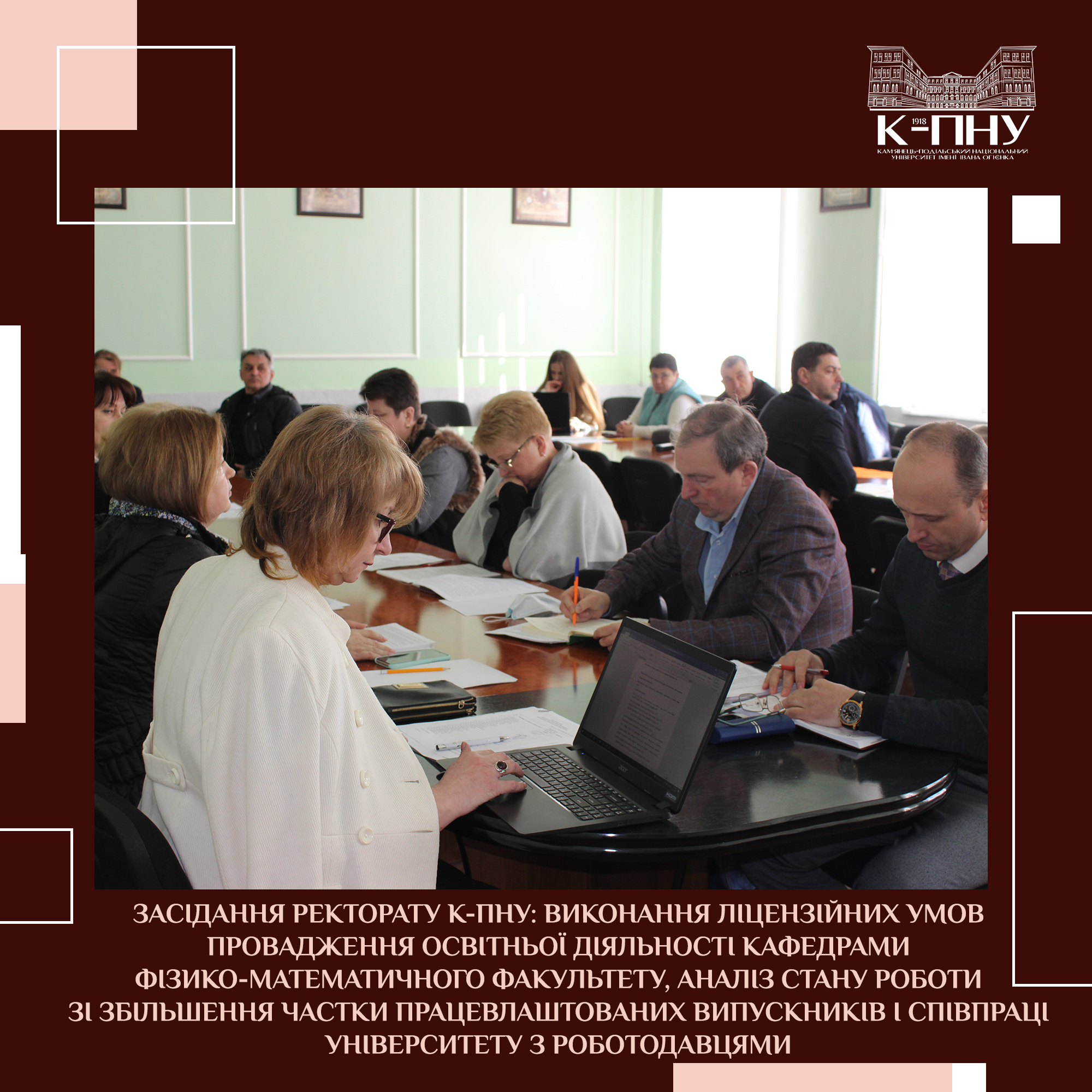Засідання ректорату К-ПНУ: виконання Ліцензійних умов провадження освітньої діяльності кафедрами фізико-математичного факультету, аналіз стану роботи зі збільшення частки працевлаштованих випускників і співпраці університету з роботодавцями