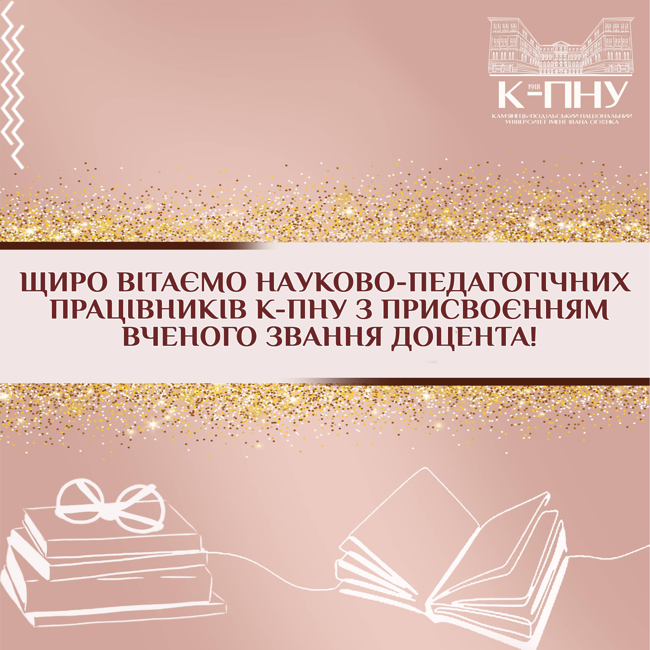 Щиро вітаємо науково-педагогічних працівників К-ПНУ з присвоєнням вченого звання доцента!