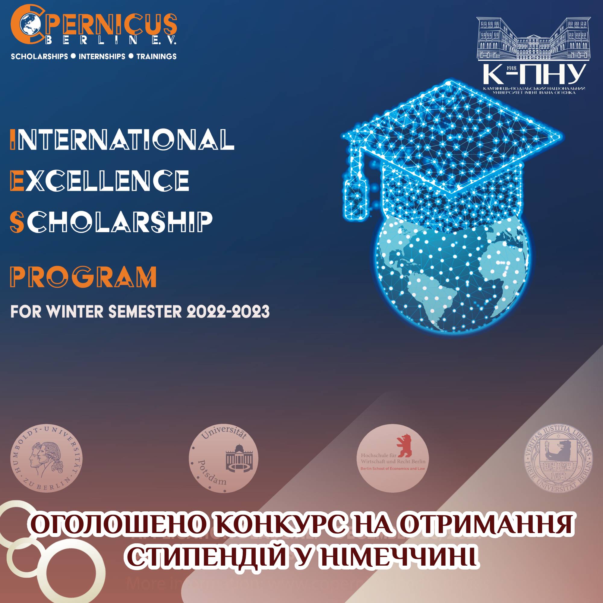 International Excellence Scholarship Program (IES)  це стипендійна програма, яка дає можливість студентам із країн Центральної та Східної Європи  навчатися протягом 6 місяців у таких німецьких університетах: Берлінський університет імені Гумбольдтів, Вільний університет Берліна , Берлінська школа економіки та права , Потсдамський університет .