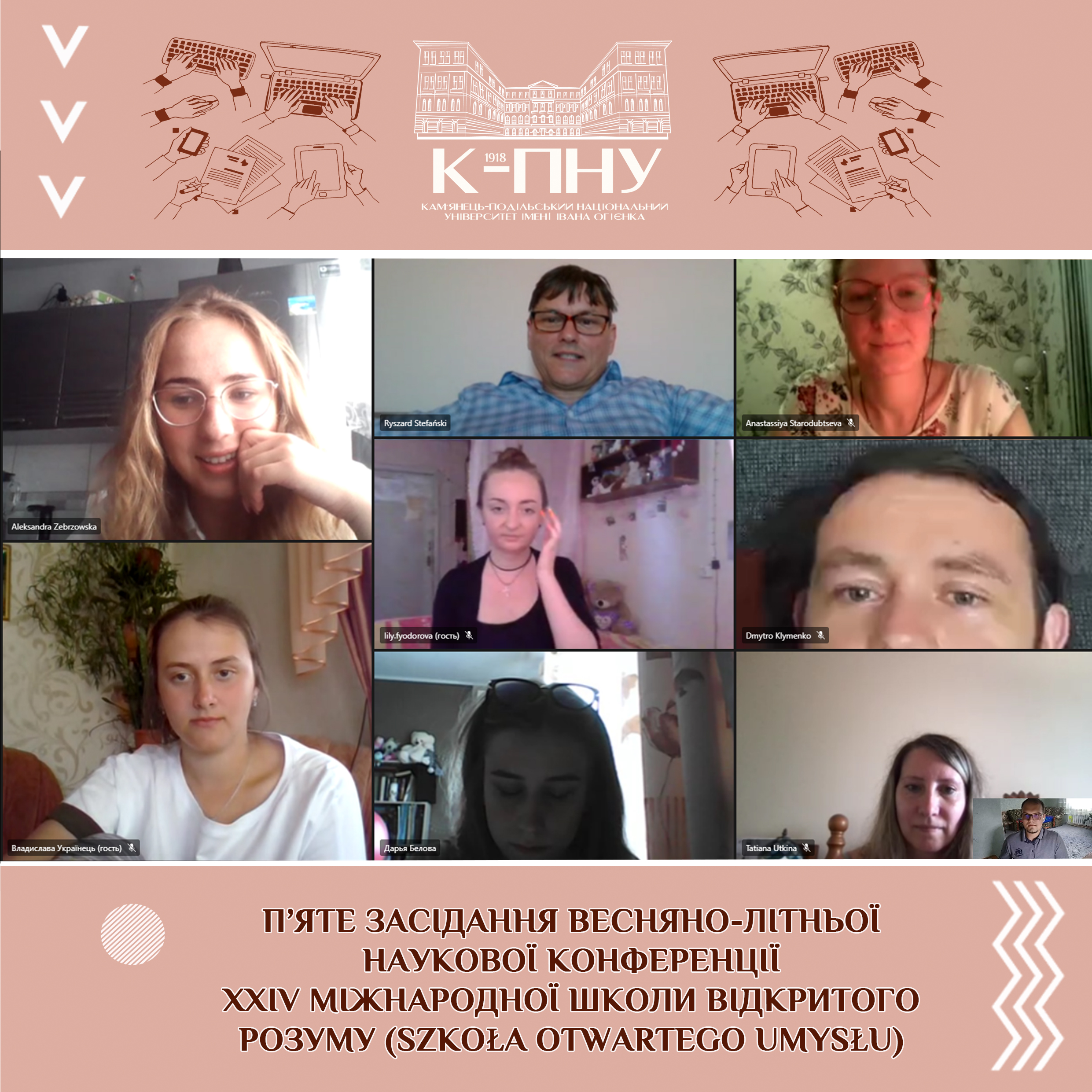 07 липня представники Кам’янець-Подільського національного університету імені Івана Огієнка разом із колегами з Університету імені Яна Кохановського (м. Кельце, Польща) провели п’яте засідання весняно-літньої наукової конференції XXIV Міжнародної Школи Відкритого Розуму (SZKOŁA OTWARTEGO UMYSŁU).