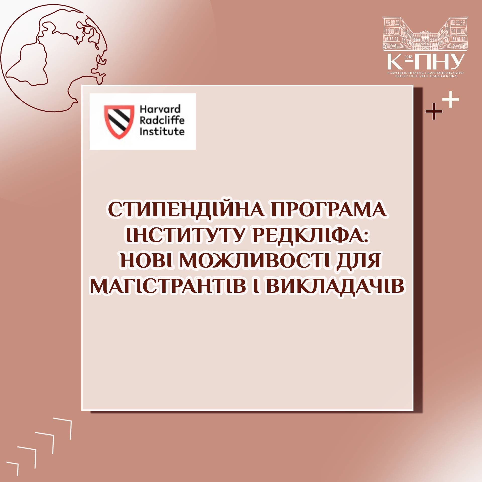 СТИПЕНДІЙНА ПРОГРАМА ІНСТИТУТУ РЕДКЛІФА: нові можливості для магістрантів і викладачів