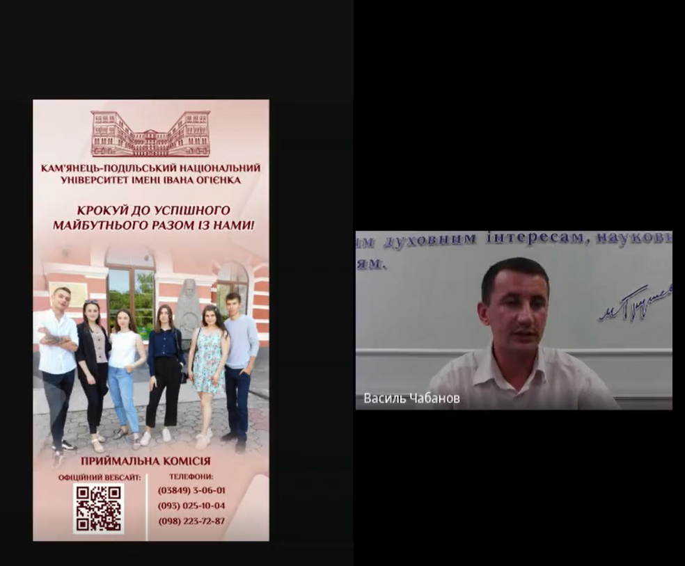 Вступна кампанія в Кам’янець-Подільському національному університеті імені Івана Огієнка триває. З огляду на численну кількість звернень абітурієнтів щодо особливостей вступної кампанії в К-ПНУ у 2021 р. 07 липня було організовано онлайнову зустріч із відповідальним секретарем приймальної комісії Василем Чабановим.