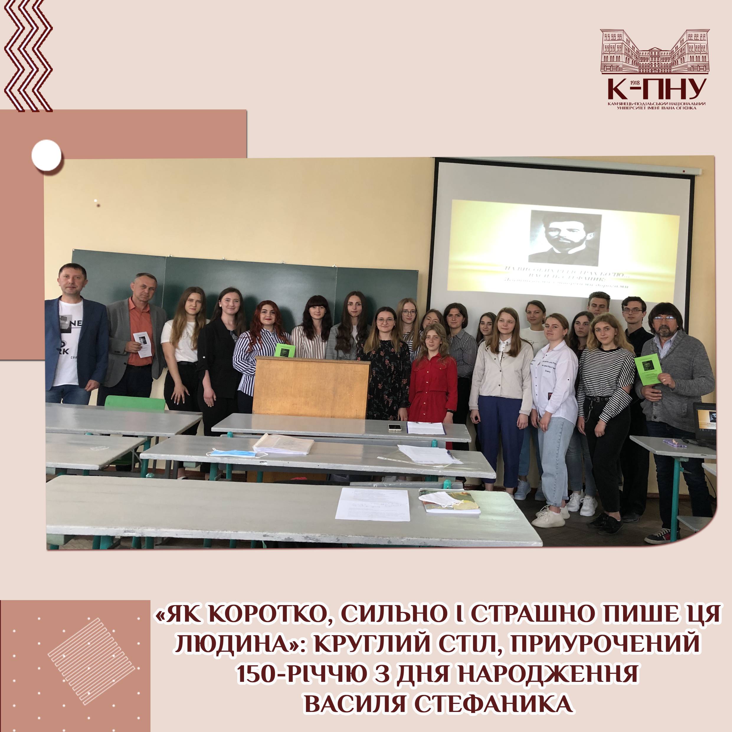 14 травня виповнилося б 150 років видатному українському митцю, неперевершеному майстру соціально-психологічної прози, новатору модерністської техніки письма, новелісту, тонкому спостерігачу людської душі, гуманісту і просвітителю Василю Семеновичу Стефанику. 18 травня на факультеті української філології та журналістики відбувся круглий стіл «На високих регістрах болю. Василь Стефаник: життєвими і творчими дорогами», приурочений 150-річчю з дня народження письменника.