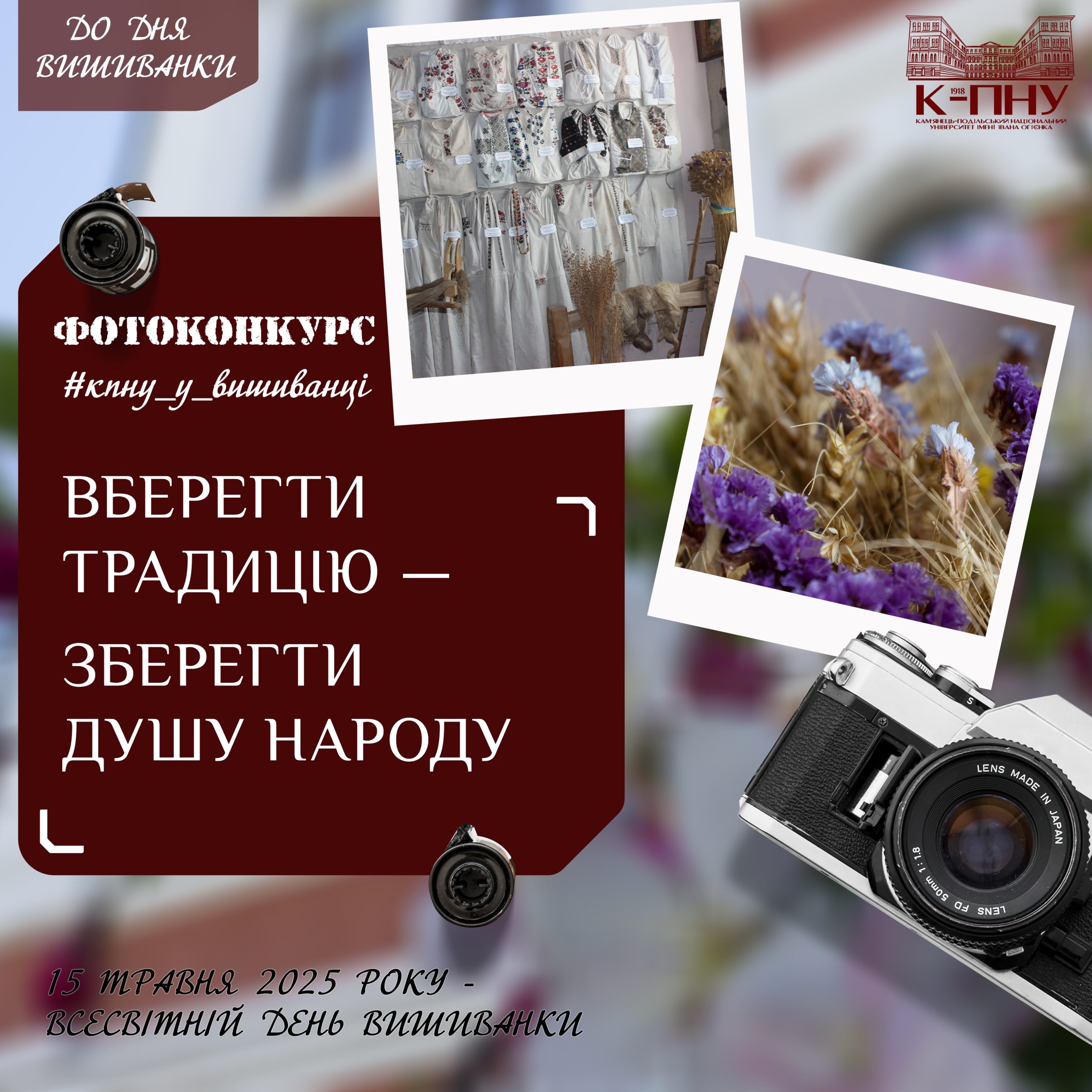 Профком студентів, аспірантів та докторантів К-ПНУ спільно зі Студентським сенатом оголошують фотоконкурс до Всесвітнього дня вишиванки під гаслом «Вберегти традицію — зберегти душу народу»!
