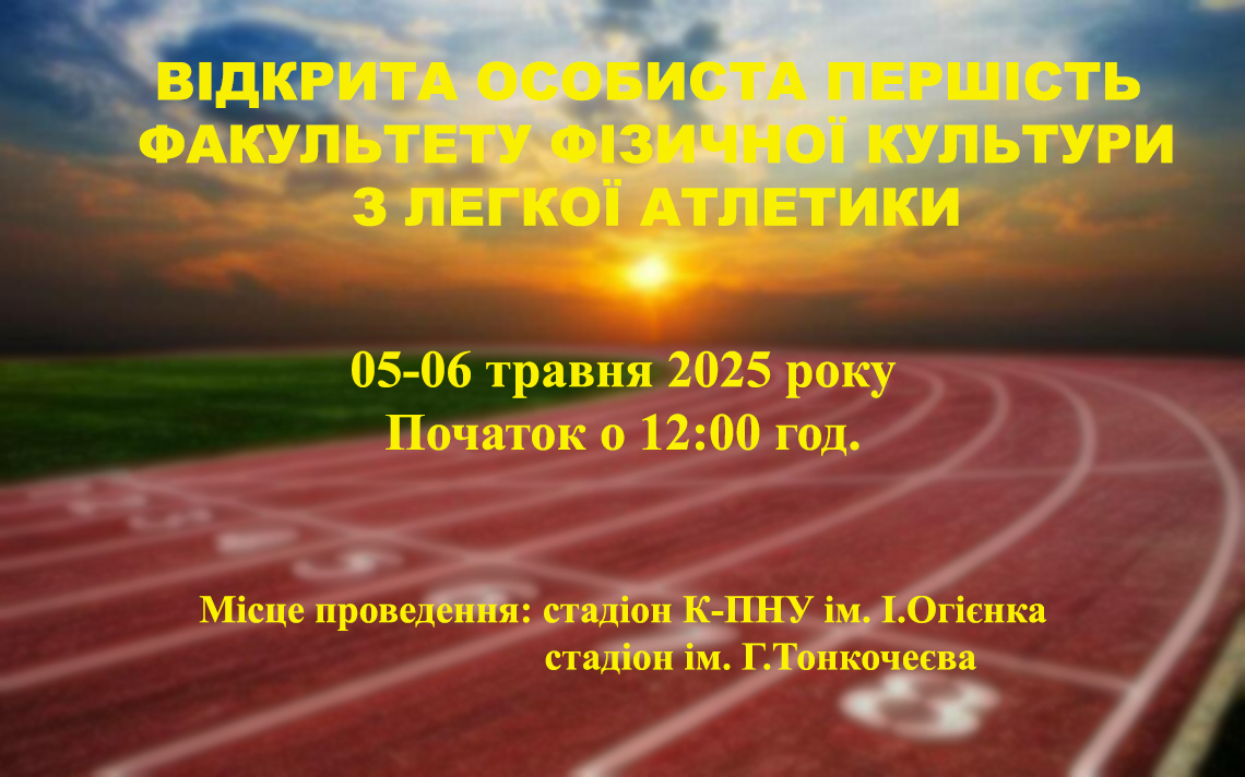 05-06 травня 2025 року відбудеться відкрита особиста першість факультету фізичної культури з легкої атлетики.