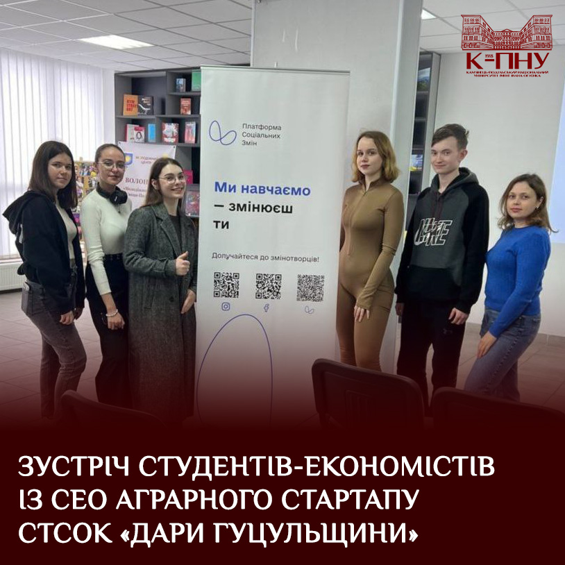 25 березня здобувачі вищої освіти першого (бакалаврського) рівня спеціальності 051 Економіка спільно з доцентом кафедри економіки підприємства Тетяною Боднарчук взяли участь у цікавій та інформативній зустрічі із засновником сільськогосподарського кооперативу «Дари Гуцульщини» Сергієм Тереном. Захід відбувся в стінах КУ «Молодіжний центр Кам’янця-Подільського» під егідою «Платформи соціальних змін».