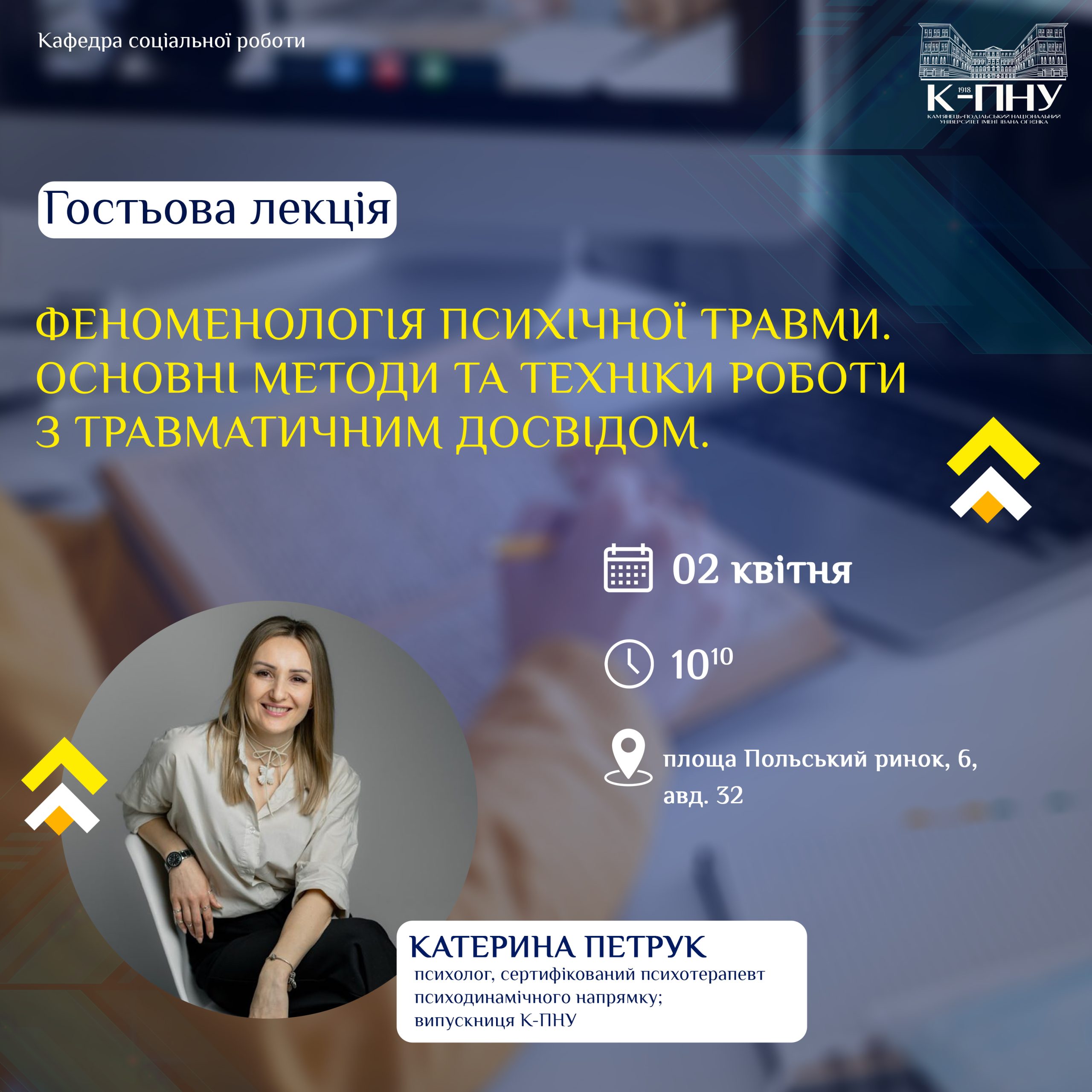 Гостьова лекція: «Феноменологія психічної травми. Основні методи та техніки роботи з травматичним досвідом»
