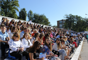 Гучні пісні, вражаючі трюки, комедійні мініатюри, вітальні слова – ось як першокурсники Кам’янець-Подільського національного університету  імені І. Огієнка святкували День знань. На спортивній арені вишу відбувся урочистий захід, приурочений цій події. Ректор університету Сергій Анатолійович Копилов сердечно привітав студентів із початком нового навчального року. Він  розповів історію славнозвісного закладу, назвав імена відомих випускників, які прославили  свою Альма-матер та наголосив, що бути студентом К-ПНУ – престижно і почесно.