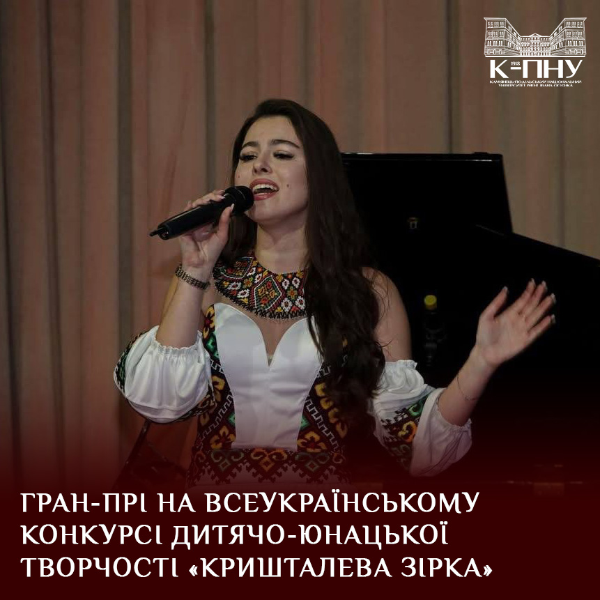 Щиро вітаємо студентку 3 курсу спеціальності 014 Середня освіта (Музичне мистецтво) Анастасію Столабу та її викладача – доцента Любов Мартинюк із здобуттям найвищої нагороди – Гран-прі у фіналі двотурового Всеукраїнського конкурсу дитячо-юнацької творчості «Кришталева зірка», який відбувся в Обласному науково-методичному центрі м.Хмельницький.